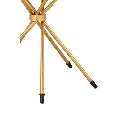 - Angled legs intersect at a central ring to create a graceful hourglass form.