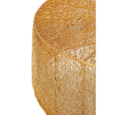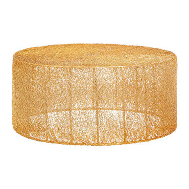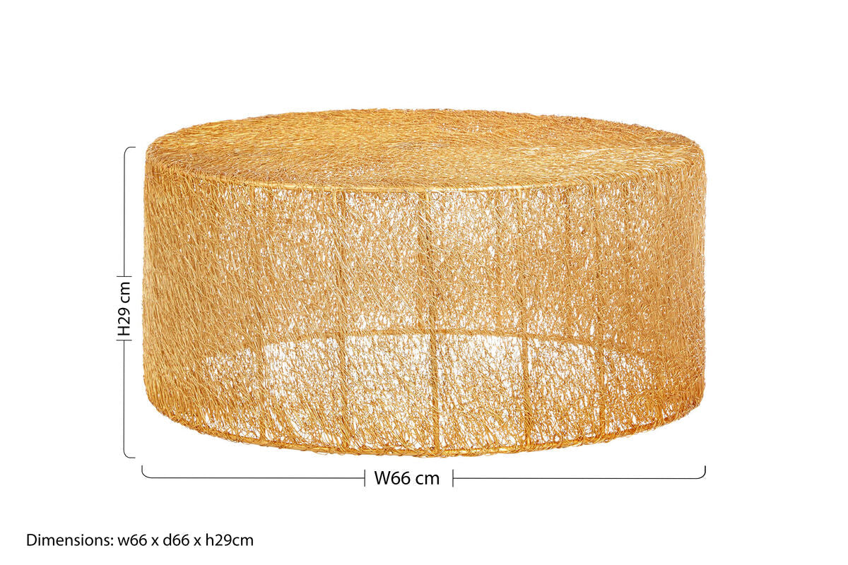 The semi-transparent sides allow light to pass through, softening the profile while adding rich texture. The gleaming gold tone introduces warmth that pairs beautifully with jewel toned cushions, marble accents, and layered lighting.