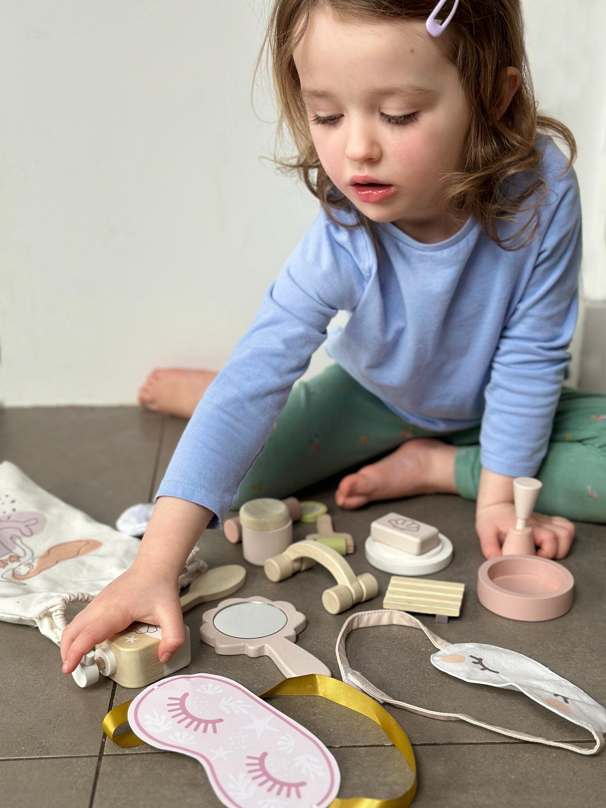 A wooden role-play toy which teaches children about the importance of self-care and wellness. The spa set is a favourite with all children, being a gender-neutral toy that everyone can enjoy. A drawstring bag with a beautiful mermaid illustration holds all the accessories that you need for a spa retreat.