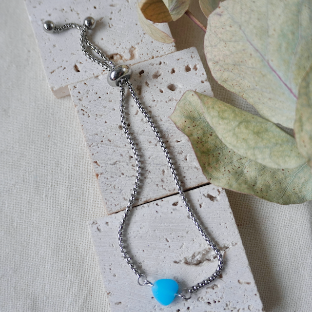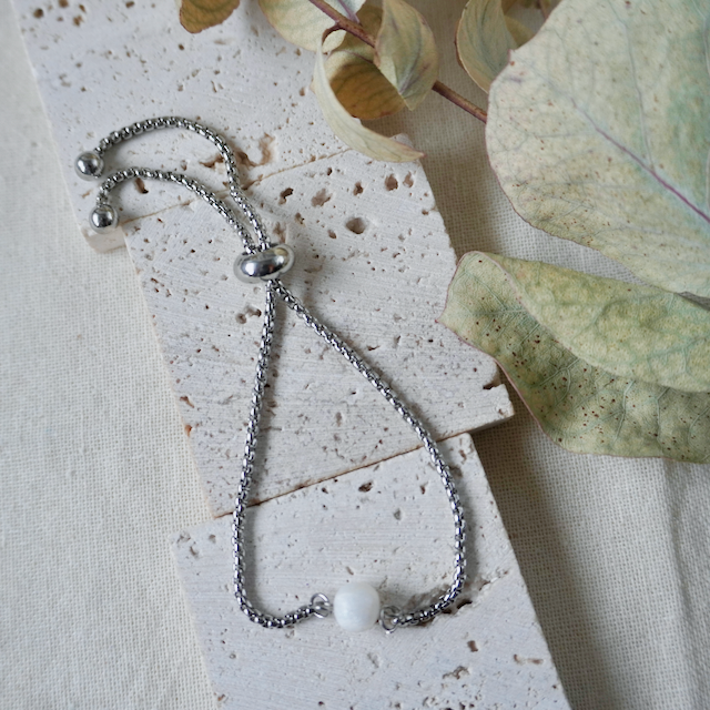 These demure bracelets are the ultimate self-gift! The central 10mm 'stone' just dazzles across the thin yet strong bracelet chain. Handcrafted with care to ensure an organic feel, each stone promises a unique look. The 22cm chain and donut clasp makes it adjustable. A stargazer's dream!