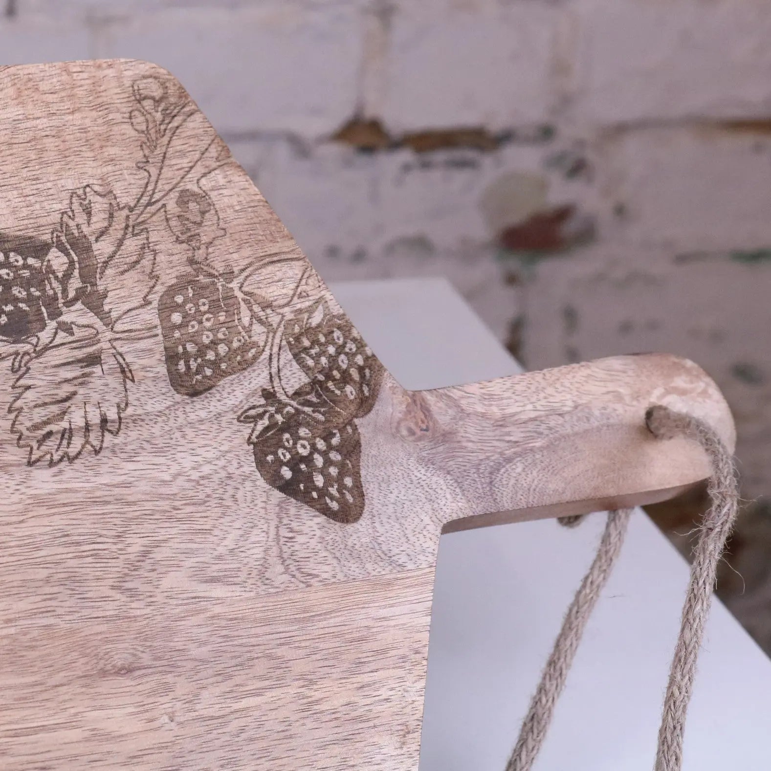 Add a touch of charm to your countertop with the Thaniya Mango Wood Chopping Board, beautifully engraved with a delicate strawberry motif. Handcrafted from solid mango wood, this board is as practical as it is decorative—perfect for everyday use or serving in style.
