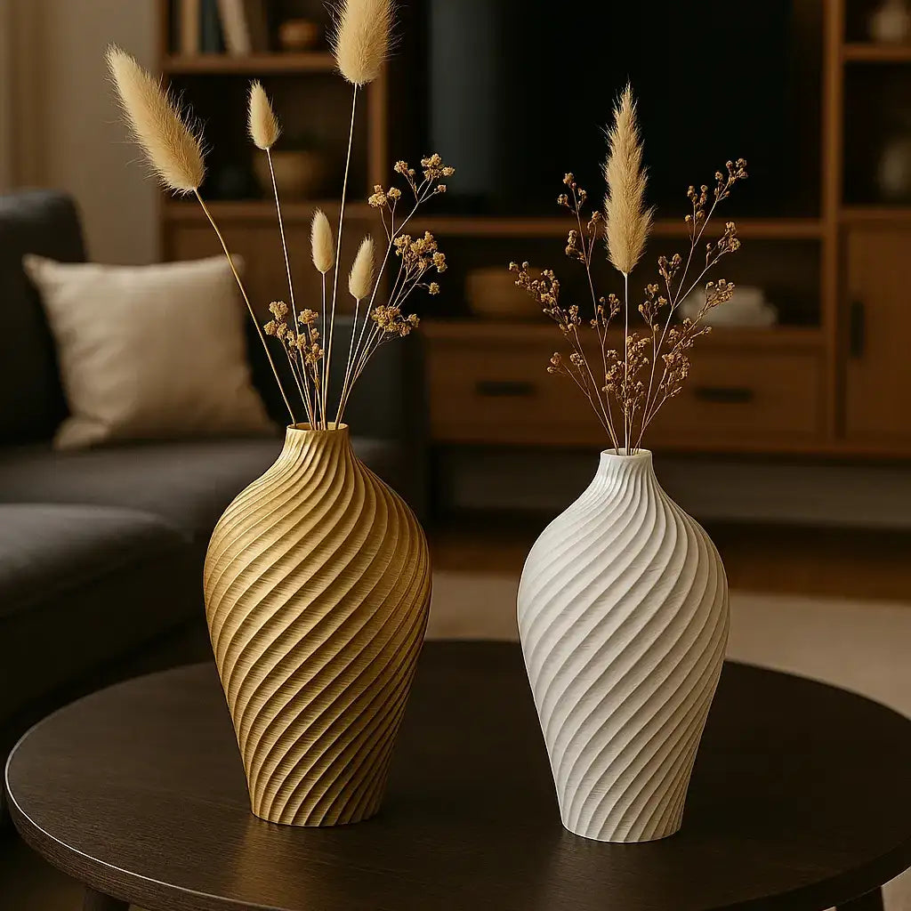 Printed flawlessly in vase mode, this piece is wonderfully lightweight and seamless, making it ideal for dried flowers, pampas grass, or sculptural branches. Its refined profile brings a subtle sense of sophistication to any shelf, table, or entryway, creating an effortlessly chic display.