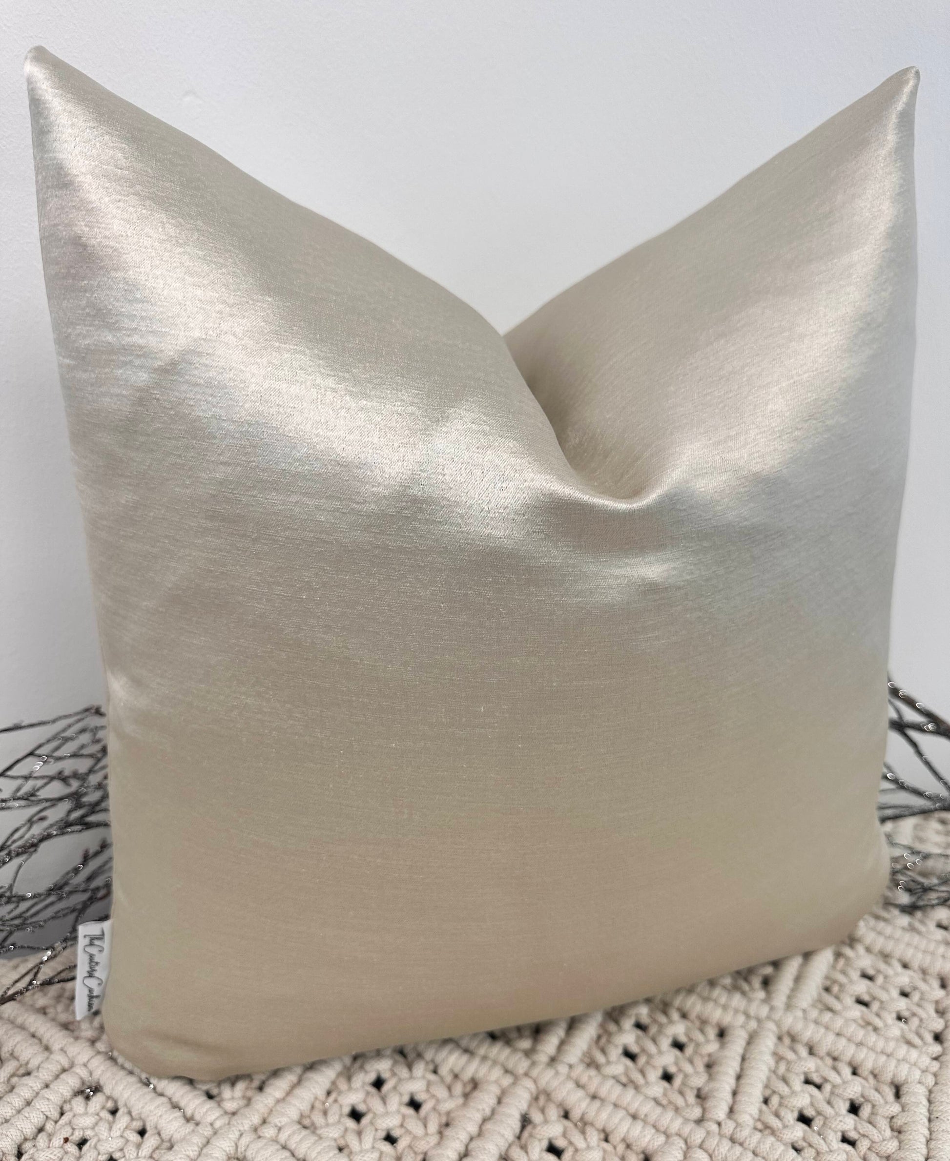This luxury champagne cushion has a lovely sheen to its semi plain surface. Coordinating with tonal natural hues, this cushion creates a timeless elegant finish to any upholstered area in your home