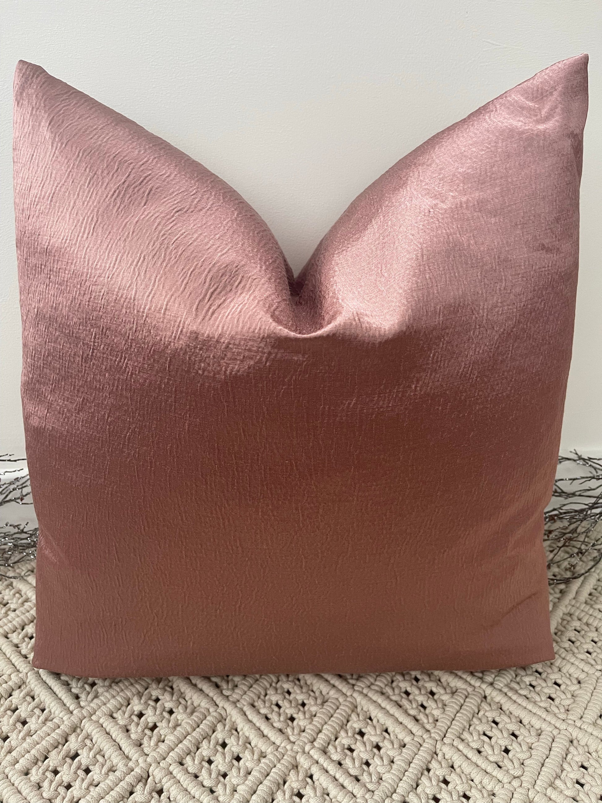 This luxury dusty pink cushion has a lovely sheen to its semi plain surface. Coordinating with tonal natural hues, this cushion creates a timeless elegant finish to any upholstered area in your home