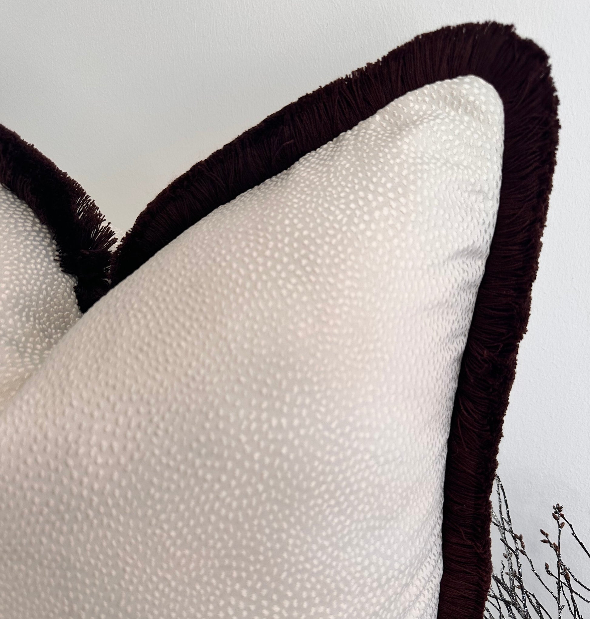 The Couture Cushion - The Ivory Borboletta Fringed in Mocha - Style No. 182