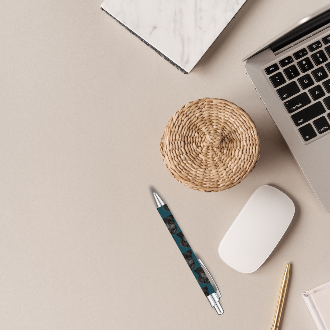Meet the only pen powered by snorts and sustainability! This eco-friendly pen is made using leftover print from other pug products—because no pug should go to waste. Whether you're jotting notes, doodling floofy faces, or just twirling it dramatically in a meeting, the Snorty Scribbler adds personality, paw-sonality, and pug-sonality to your day. Warning: may cause uncontrollable smiling while writing.