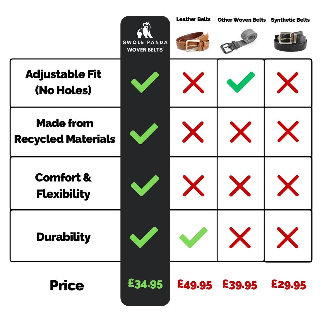 The Swole Panda Recycled Woven Belt is where innovation meets everyday style. Fully adjustable with no set holes, its elasticated weave gives you a precise fit and all-day comfort – whether you’re in jeans, chinos, or shorts.