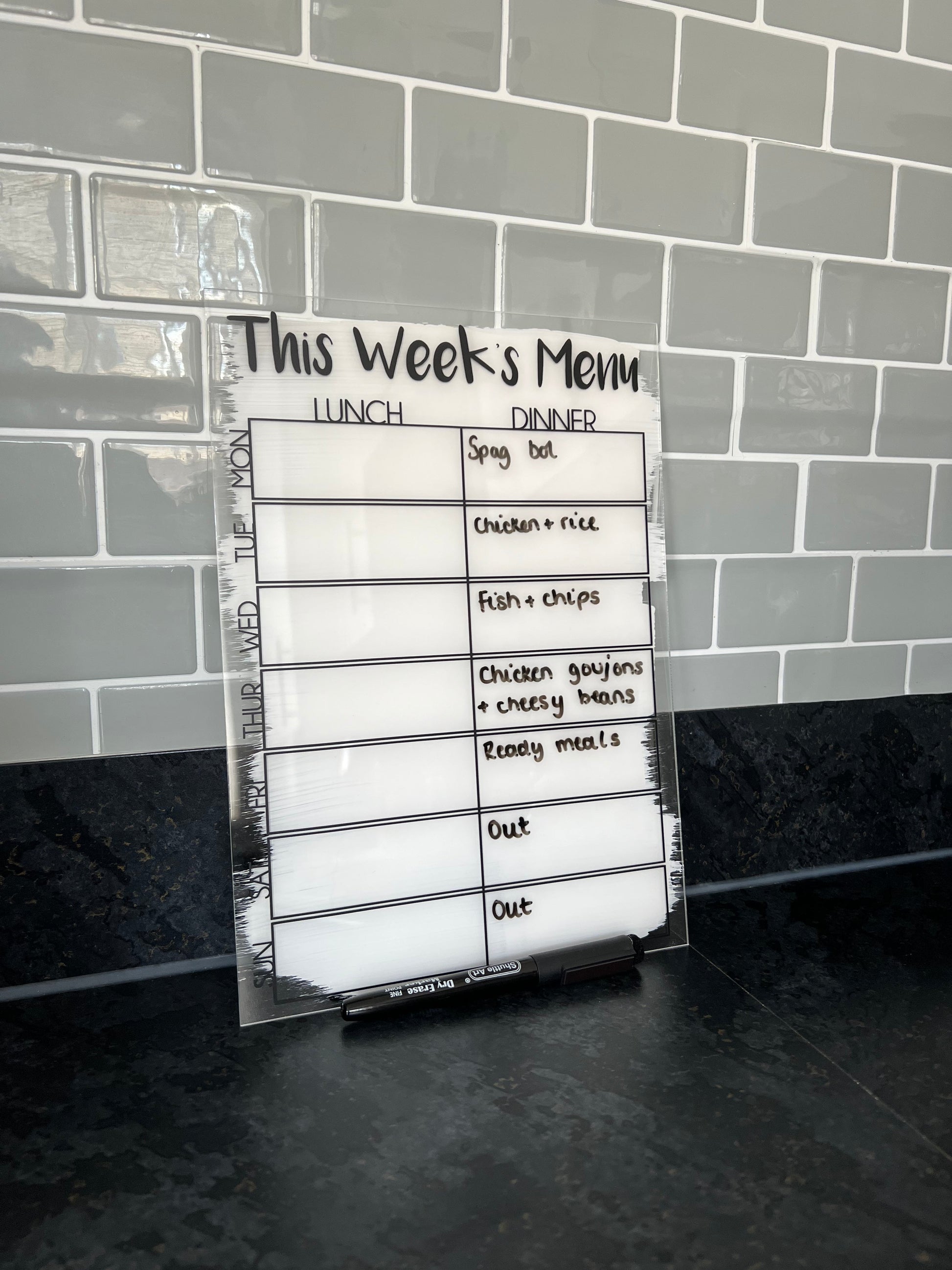 This Week's Menu Food Meal Planner Painted A4 Clear Acrylic Wipeable Sign With Drywipe Pen