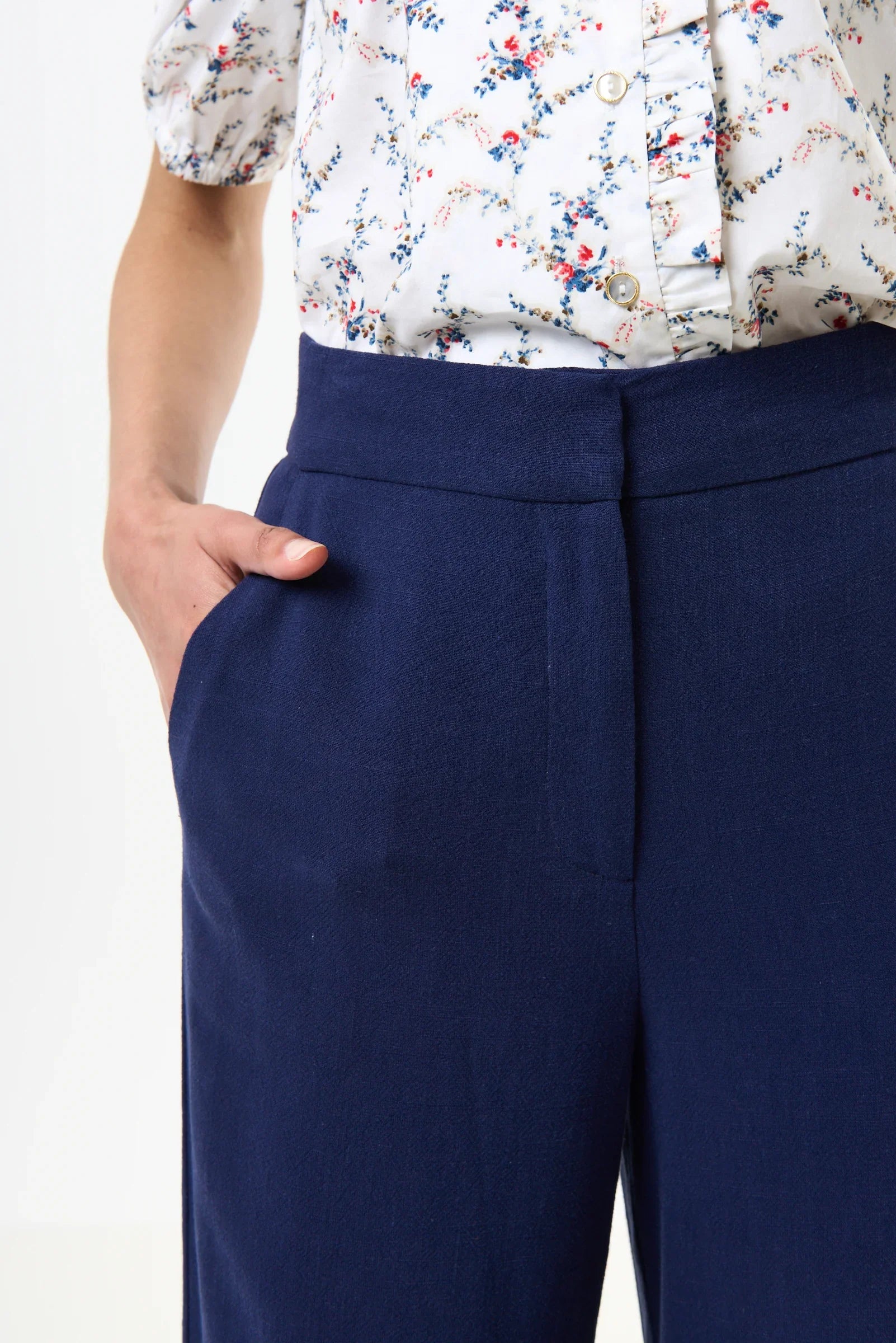 Introducing Tilde linen mix, straight-leg trousers in a deep navy. Crafted from premium fabric, these trousers combine the durability of linen with the fluidity of viscose for a comfortable yet stylish fit. Perfect for any occasion, these tailored trousers will be your new go-to wardrobe staple!