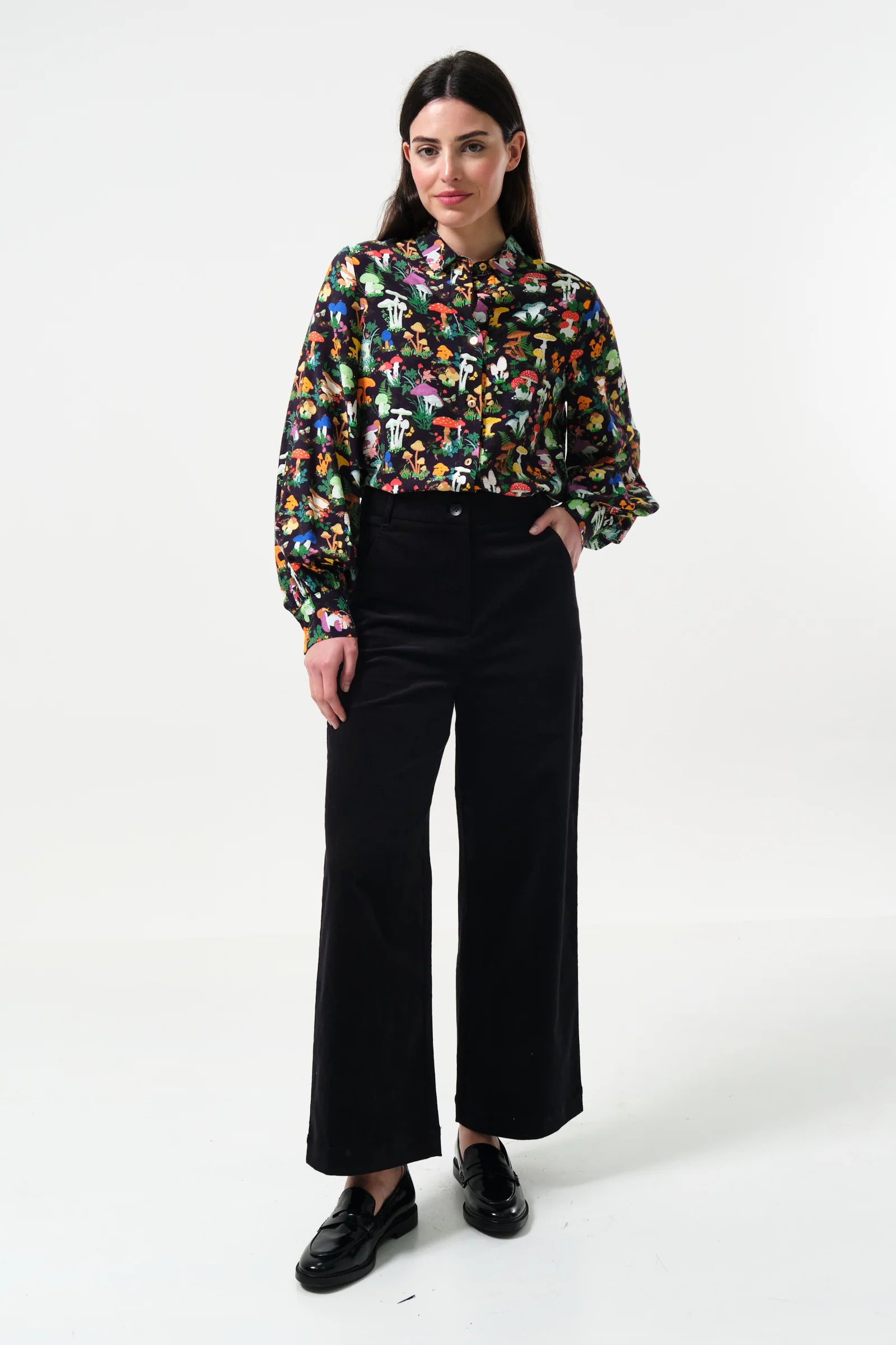 The ankle-length Tim trouser in black is cut with a wide-leg high waist giving it an easy flattering fit. Crafted in super soft cord, making it your go-to winter trouser.