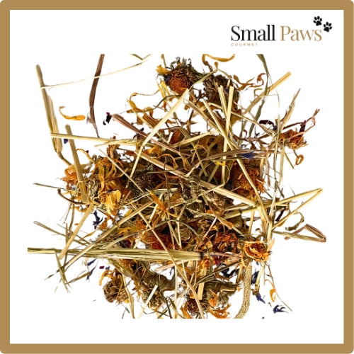 Ingredients: Timothy Hay, Marigold Flower, Hibiscus, Cornflower