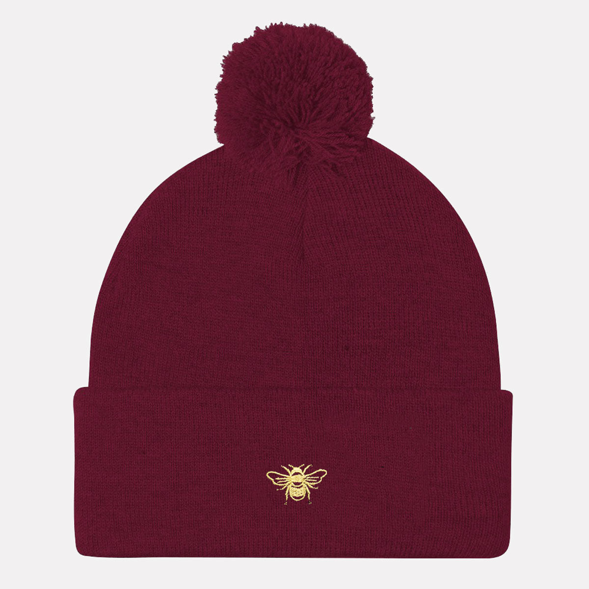 Tiny Embroidered Bumble Bee Vegan Pom Pom Beanie