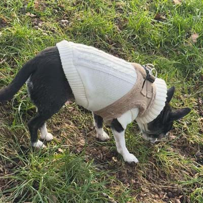 Created using top quality comfy Soft Suede effect outer fabric and plush warm and cosy Faux Fur lining, our vest harness is easy to step into so it does not have to go over your pup's head.