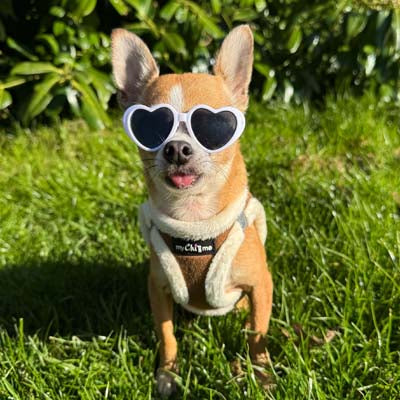 Each harness is finished with a black rubber My Chi and Me branding patch on the chest and the My Chi and Me branding on the acrylic buckle for that quality finishing touch.
