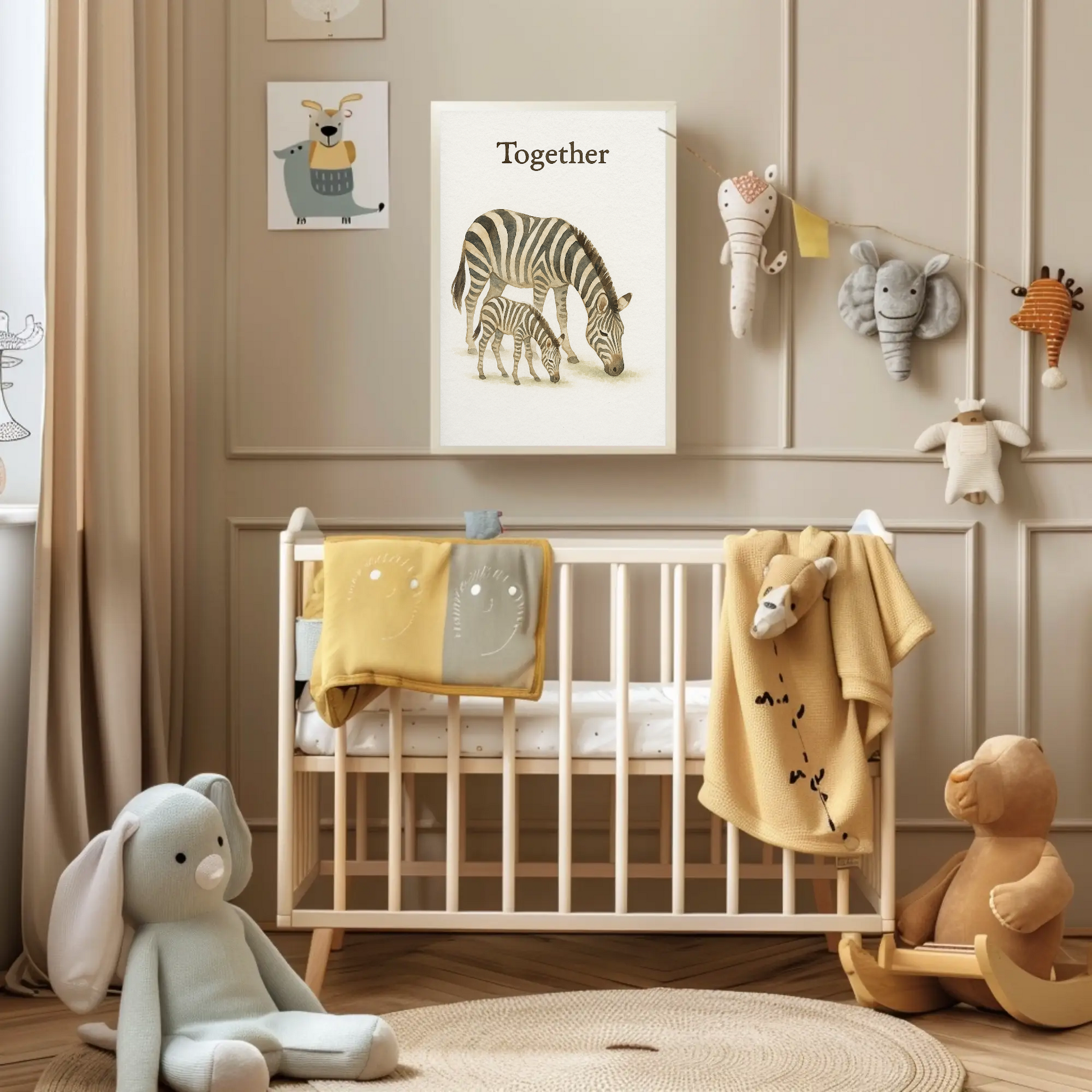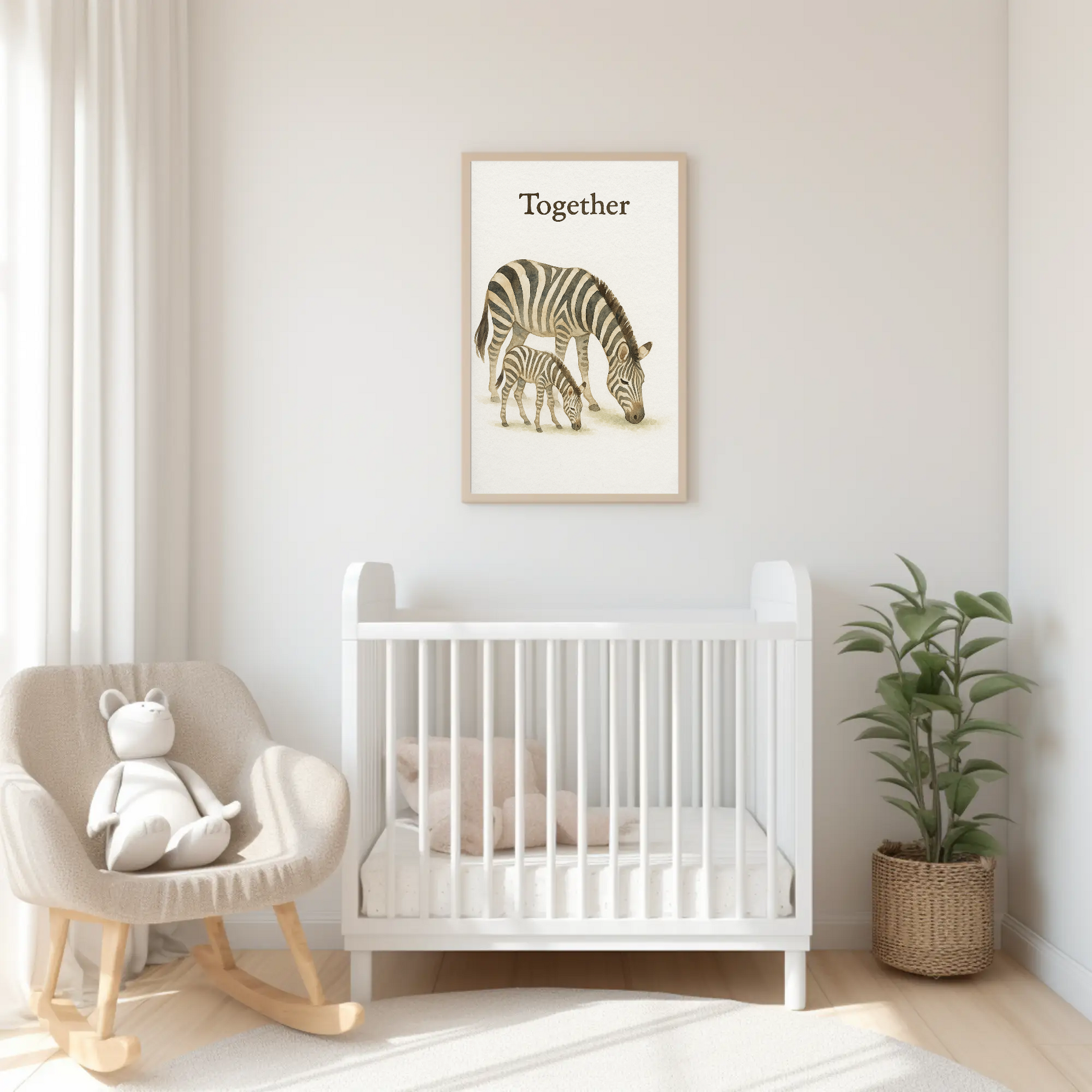 Together Zebra Family Safari Watercolour Nursery Children's Room Wall Decor Print