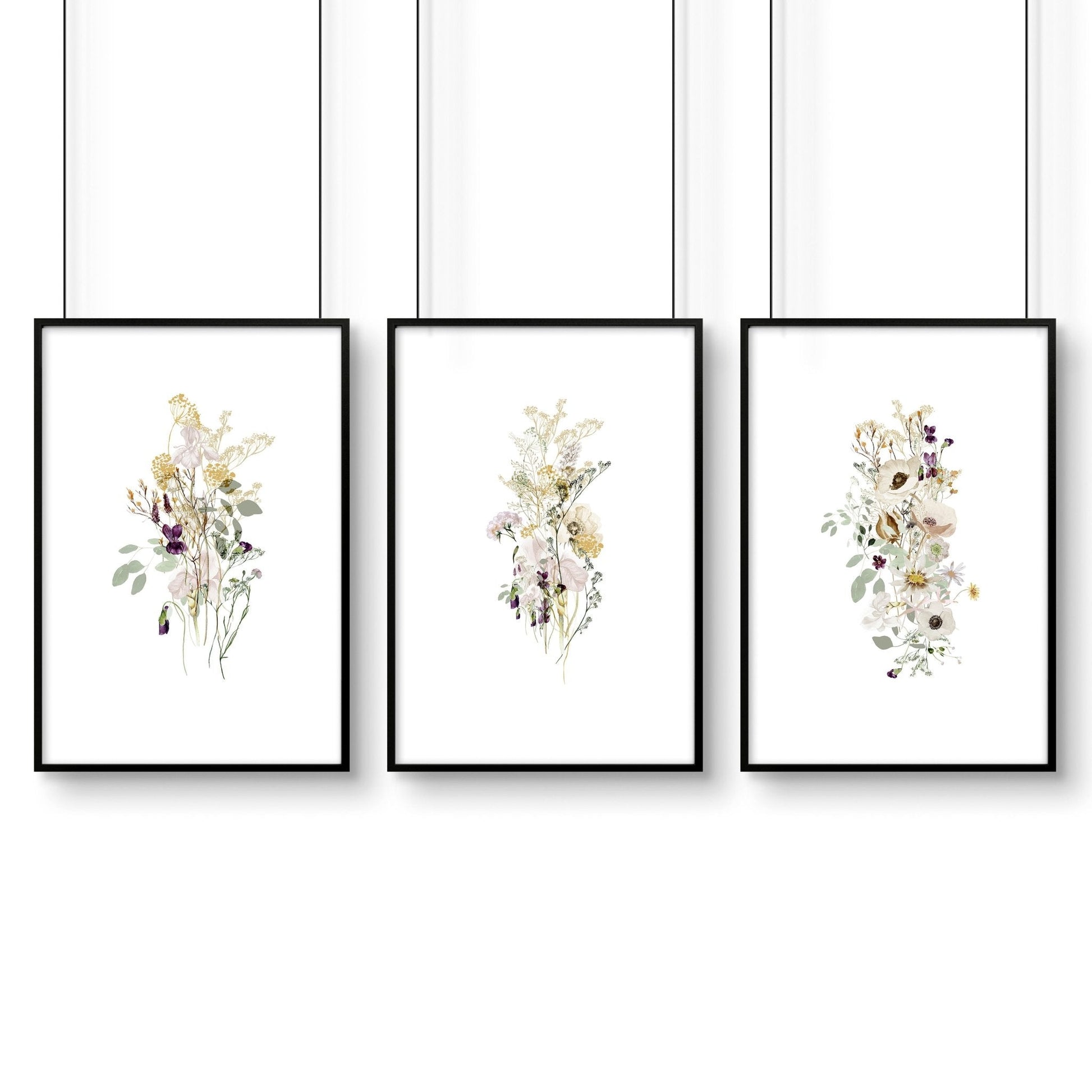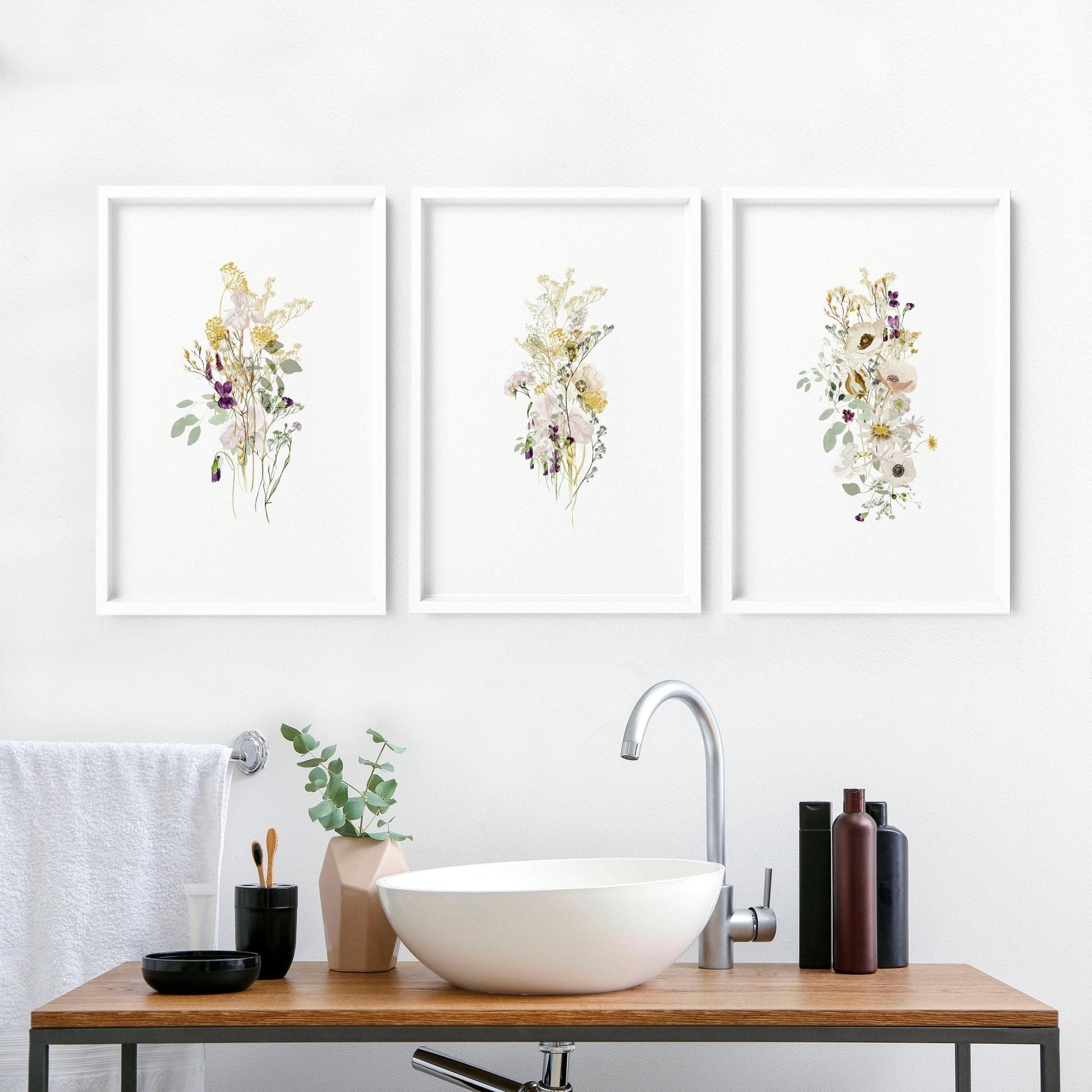 Toilet wall decoration | Set of 3 Floral wall art prints