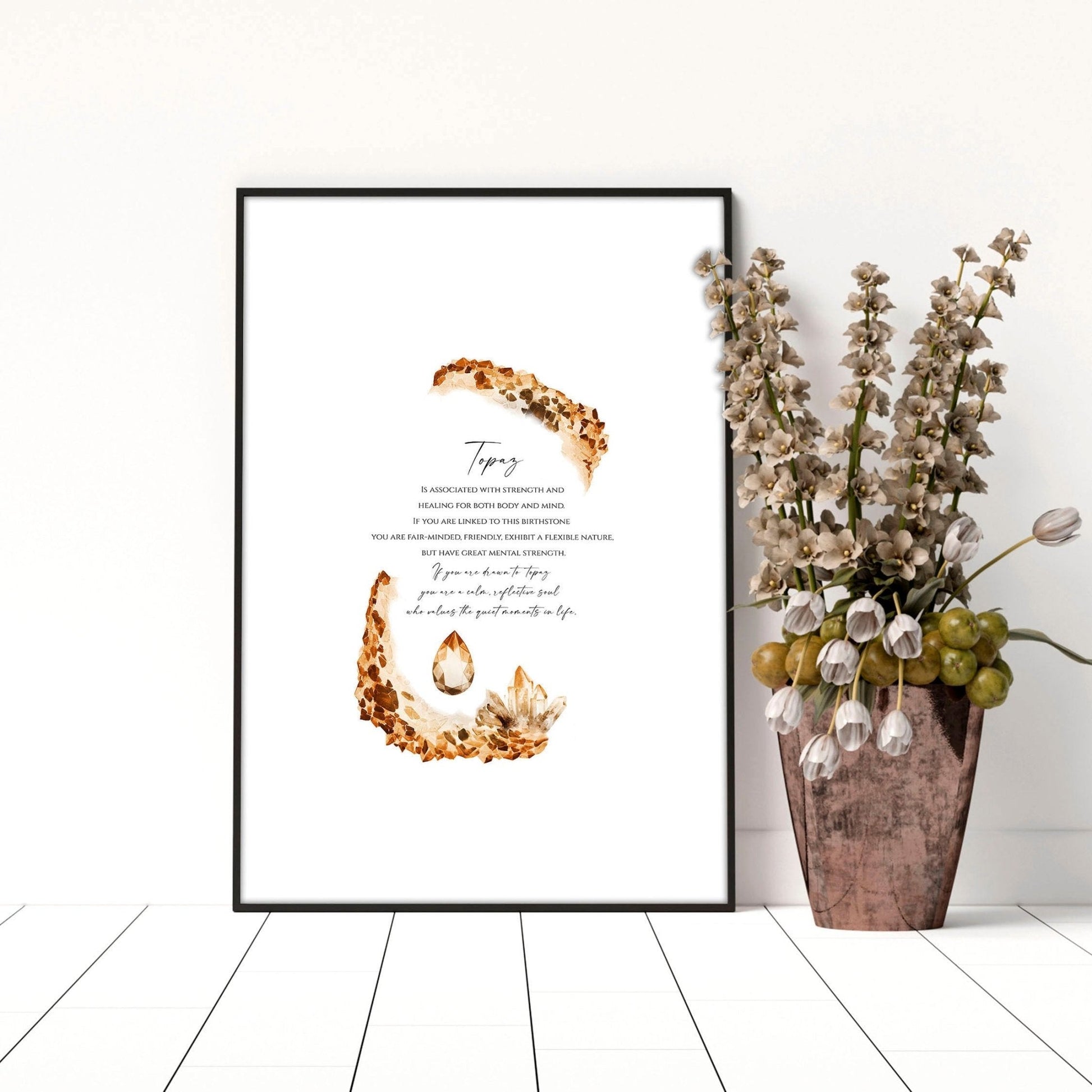 Whether you're looking for a unique gift for someone born in December December or for your Sagittarius or Scorpio Best friend, this Topaz Birthstone wall art print is a perfect choice.