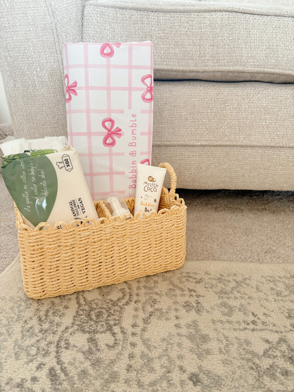 Add a touch of sweetness to your everyday essentials with our Pink Bow Travel Changing Mat, designed exclusively by Bobbin and Bumble. Featuring a soft pink checkered background and oversized pink bows, this charming mat combines elegance and ease,Β perfect for baby girls.