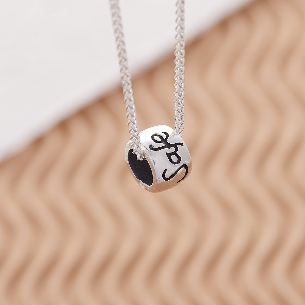 A meaningful little bead pendant, it slides easily on a silver curb chain and is suitable for both men and women, making it a versatile and cherished piece of jewellery. The original gift card adds a personal touch to your gesture.