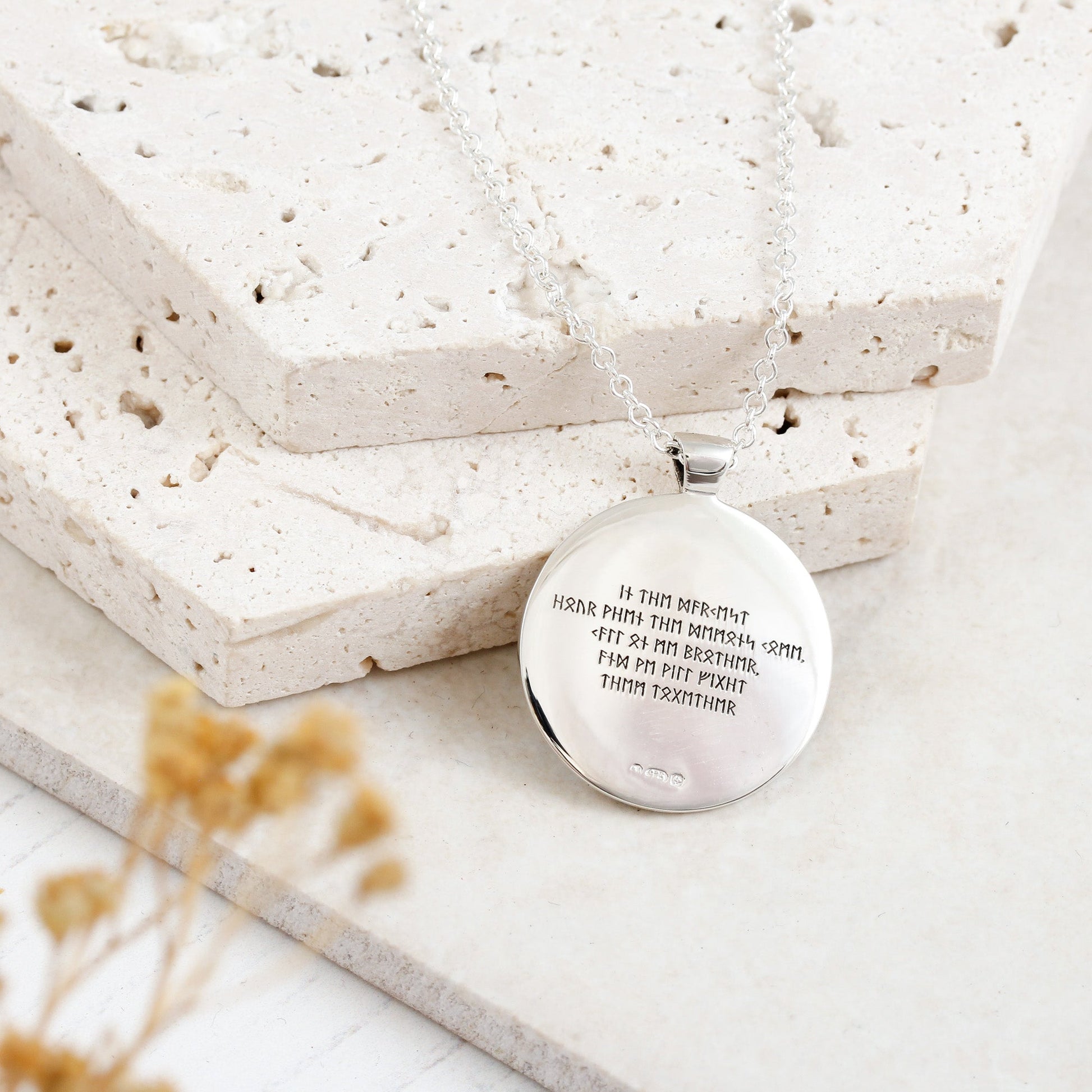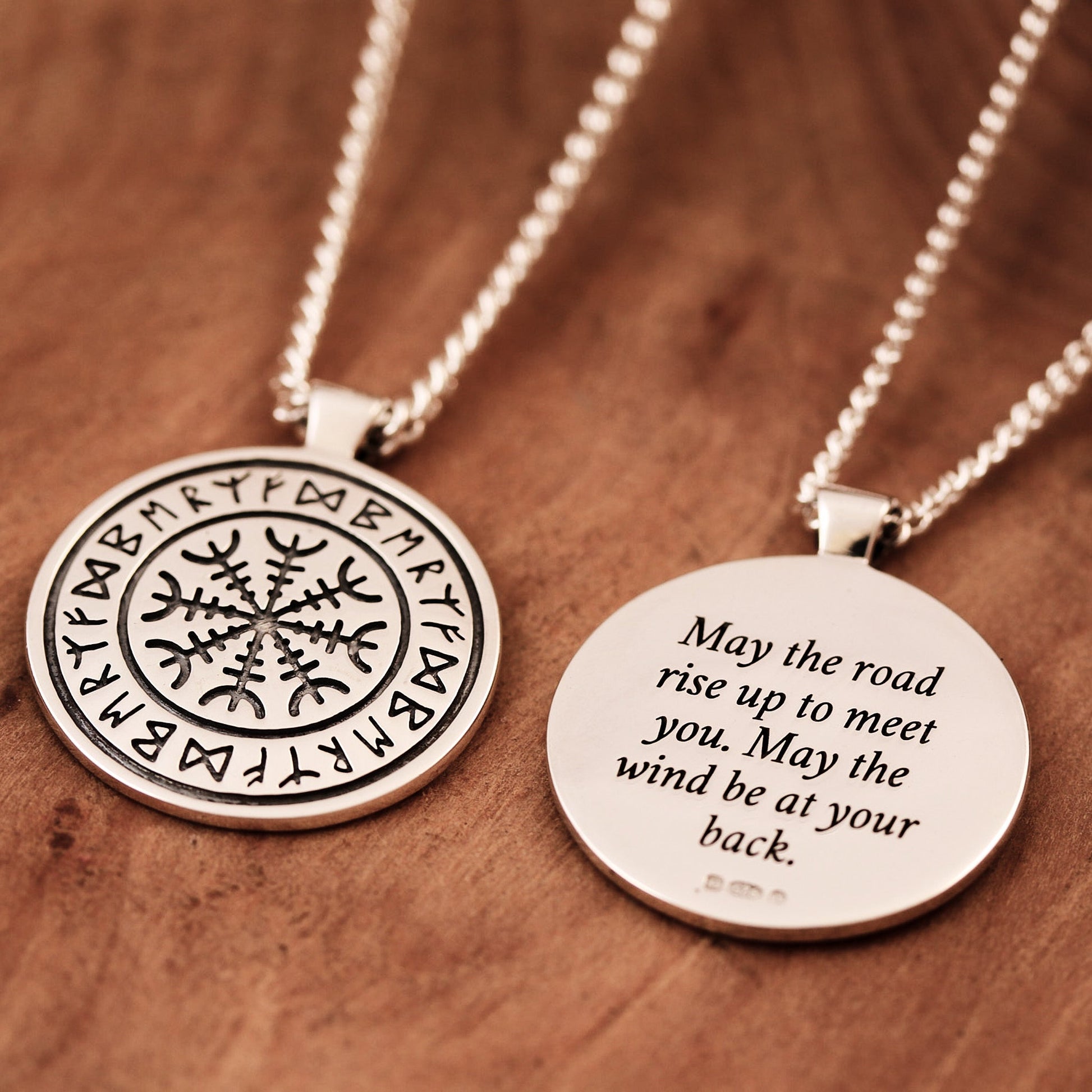 Discover the perfect gift for men who love to travel with our unique and bold necklace from our sister company Off The Map Jewellery. This weighty solid silver necklace features a series of six runes that symbolise living life to the max, adventure, travel, and protection.