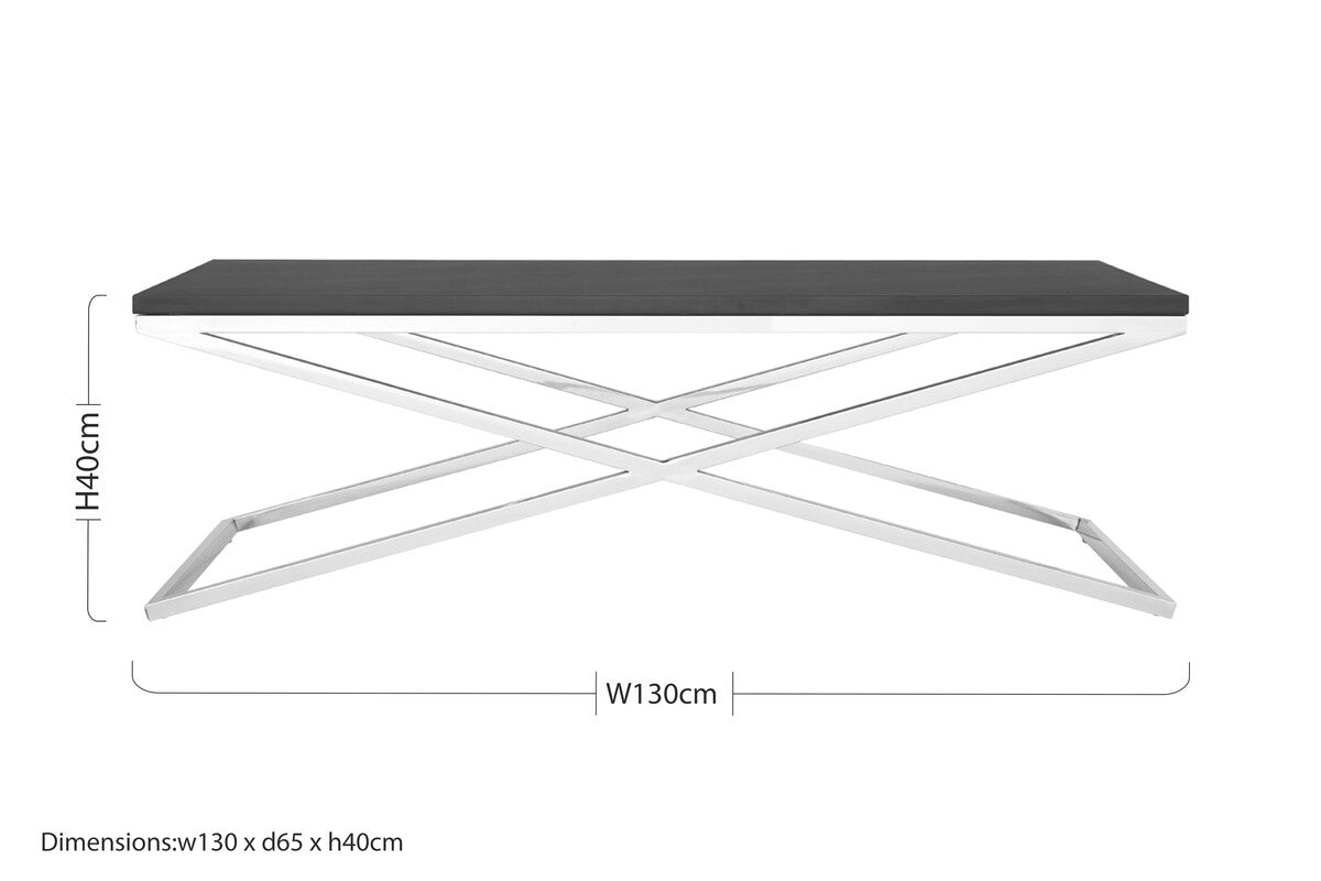 The stainless steel legs on the black coffee table are crisscrossed, which not only makes for an interesting design, but ensures the table is sturdy and durable. This MDF table top is upholstered in plastic that gives it a black leather jacket look, and makes the table easy to wipe clean.