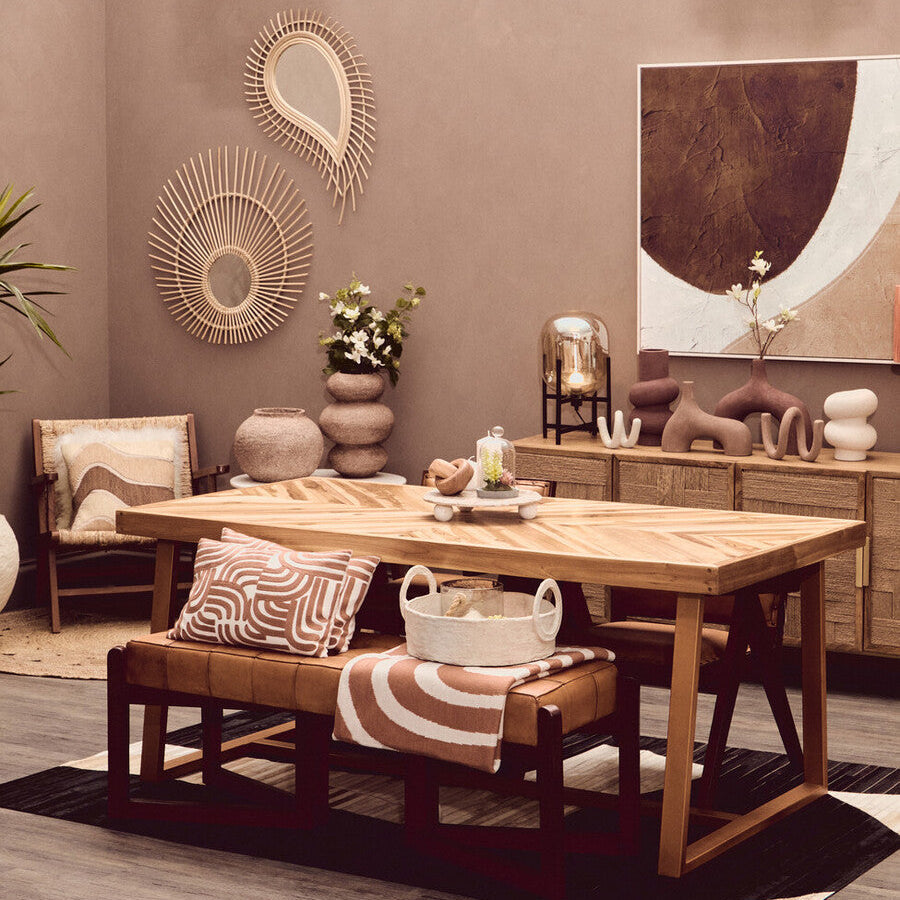 The Black Glass Table Lamp offers modern sophistication with an industrial edge. Its minimalist black metal base supports a uniquely shaped clear glass shade that reveals the bulb inside, creating both functional lighting and sculptural presence.
