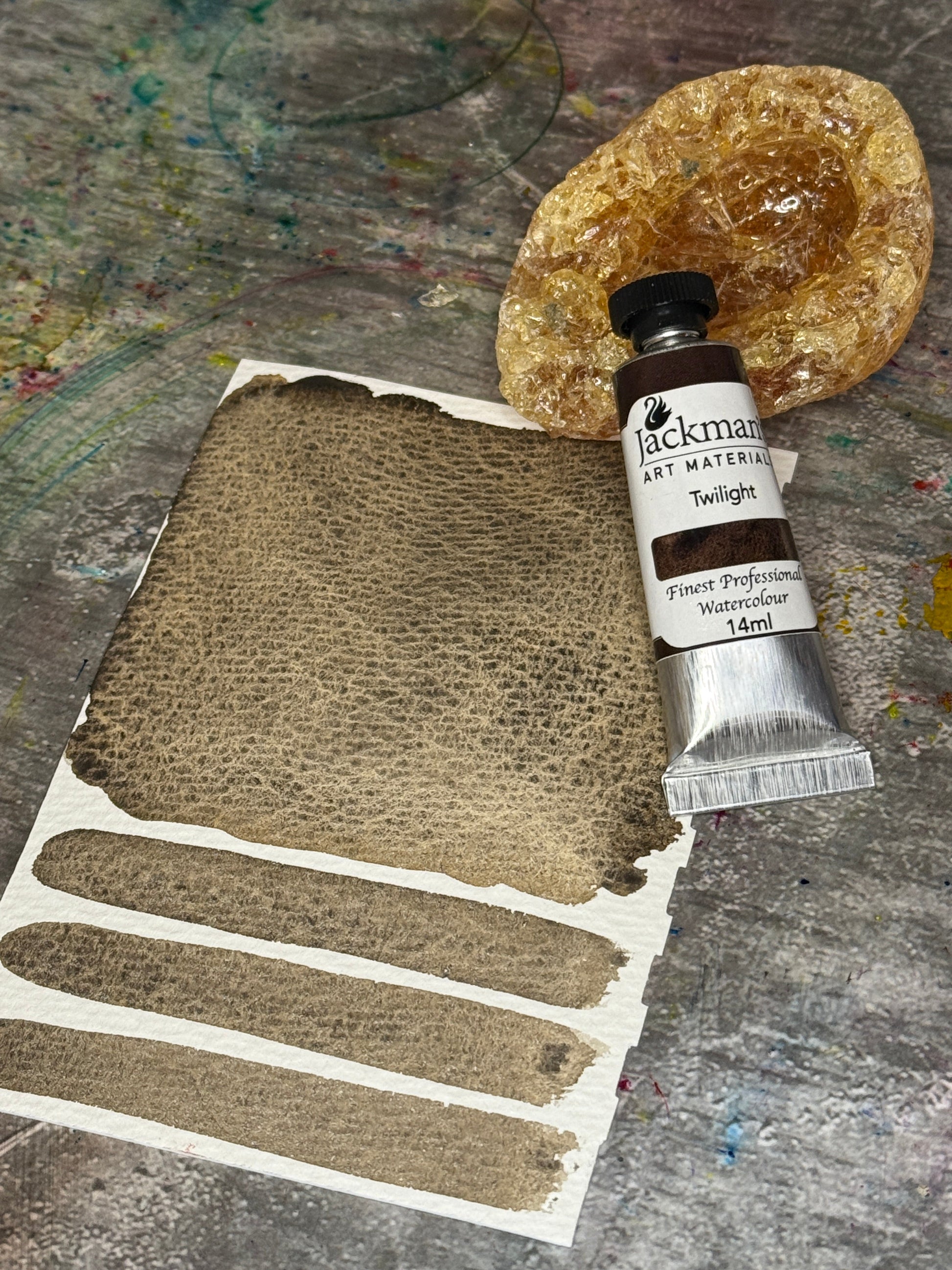 Twilight is a moody, atmospheric handmade watercolour created from a rich blend of Burnt Umber (P.Br 6) and Black Iron Oxide (P.Bk 11). This unique combination results in a deep, earthy tone that transitions seamlessly from shadowy black to muted warm brown—evoking the hushed stillness of twilight as day fades into night.