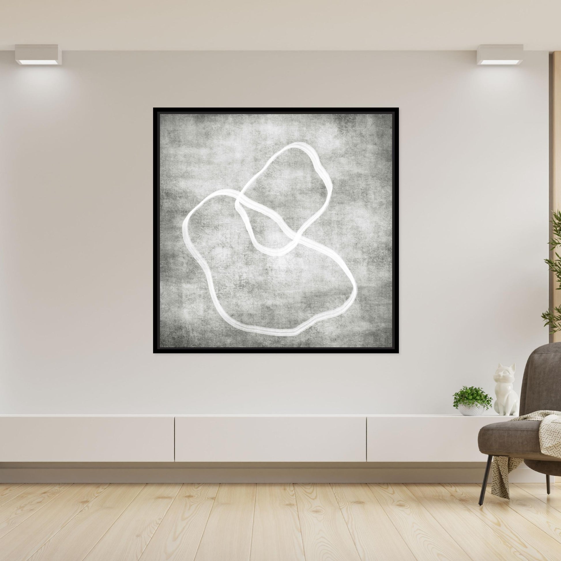 Experience the pure essence of abstraction with ‘Unbroken’– a mesmerising minimalist piece adorned with white fluid shapes against a tonal grey background. This captivating artwork embodies the beauty of simplicity.