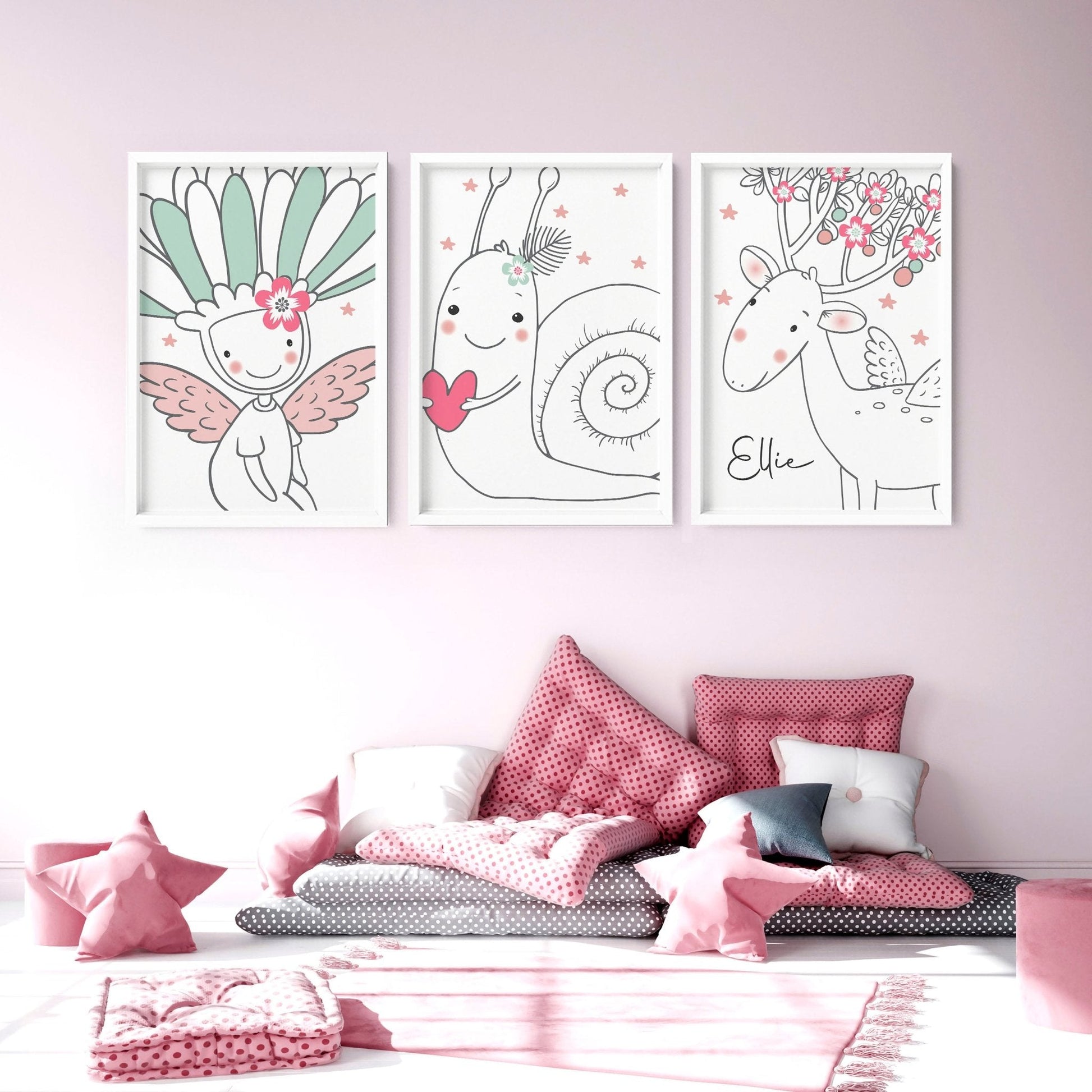 Personalised Unicorn name and Fairy Nursery wall decor | set of 3 wall art prints details: