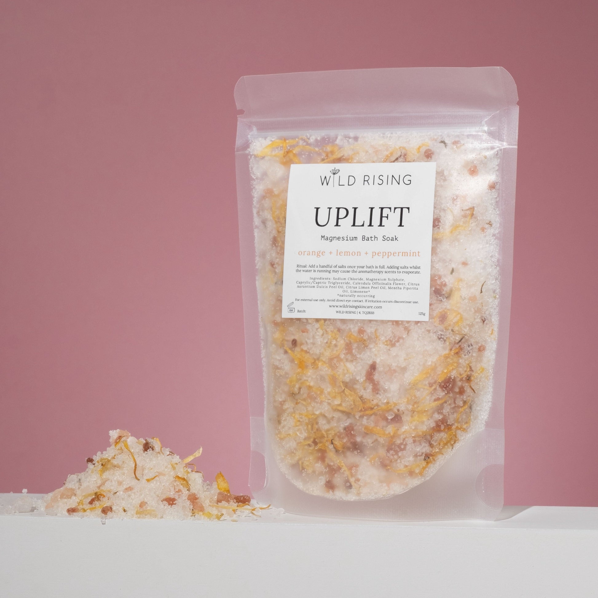 Our Uplift bath salts are rich in Magnesium due to their Pink Himalayan and Epsom salt blend, for anyone who doesn't know, Magnesium is the important mineral, playing a role in over 300 enzyme reactions in the human body. Its many functions include helping with muscle and nerve function, regulating blood pressure, and supporting the immune system - think of it as a warm body hug.