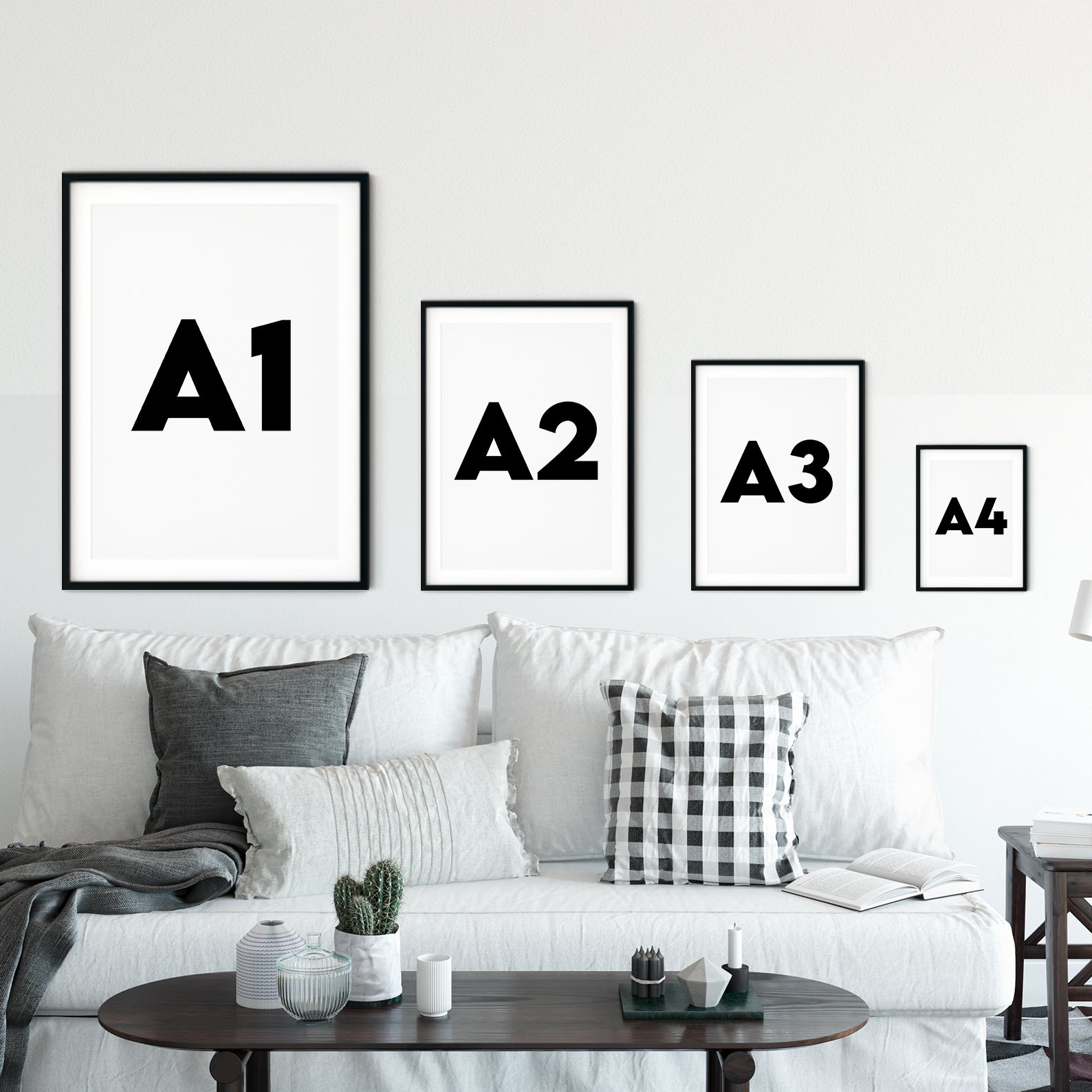 Choose between a black, white or oak wood frame, complete with high quality glass and a bright white window mount ready to be hung on your wall.