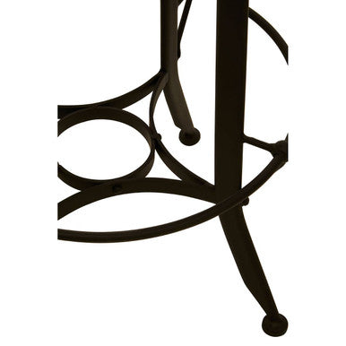 The Vasco Black and Green Finish Bar Stool sets a circular green marble seat on a black iron frame whose legs curve gently to soften the silhouette. A continuous footrest encircles the base, supporting a relaxed sit while adding a refined graphic line at counter height.