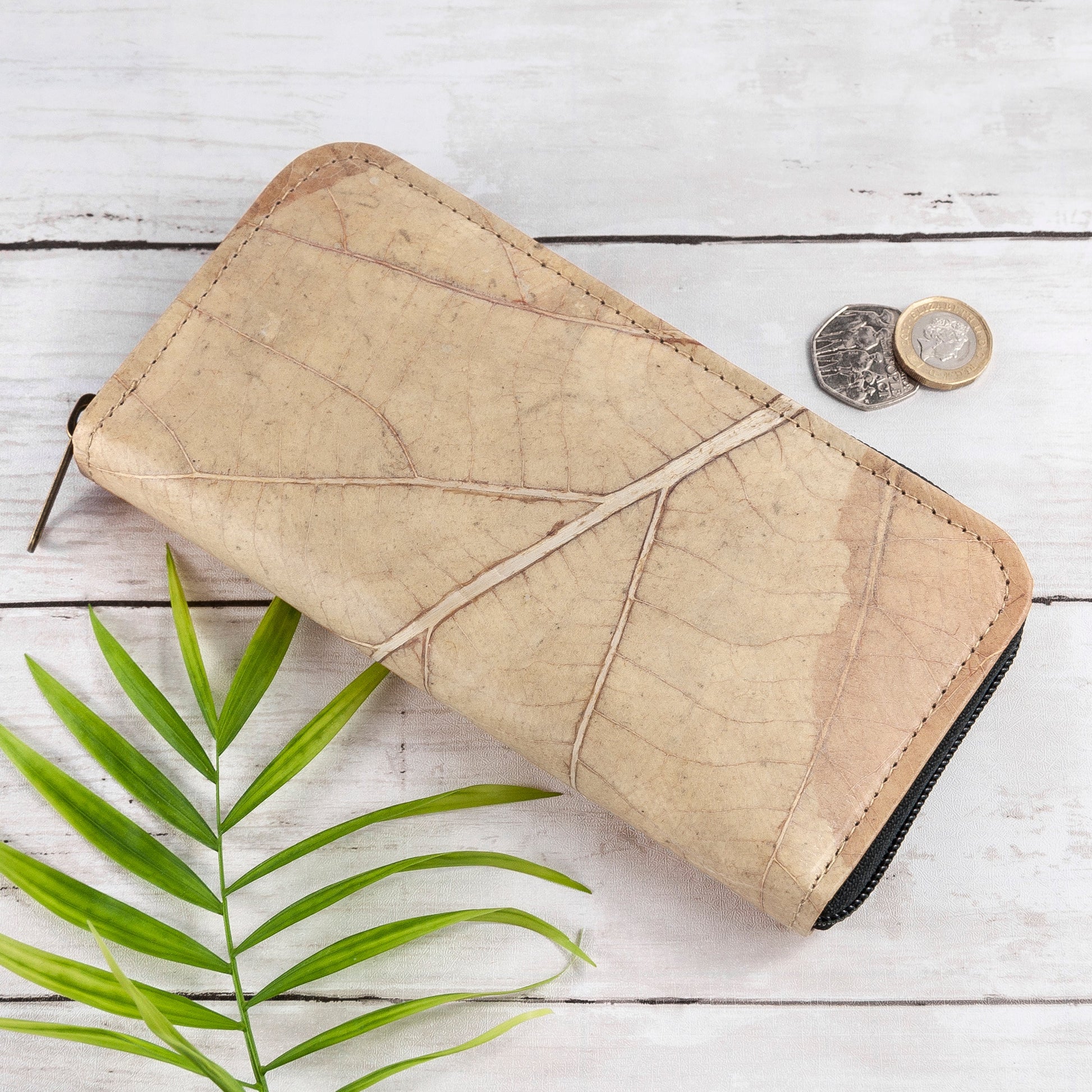Made from leaf leather, a vegan and cruelty-free alternative to leather, this purse is perfect for the eco-conscious buyer. Our leaf leather is made from sustainably harvested teak leaves, which are dried and coloured with natural dyes before being sealed with a resin to preserve it, making it into a vegan leather that’s durable and karma-neutral.
