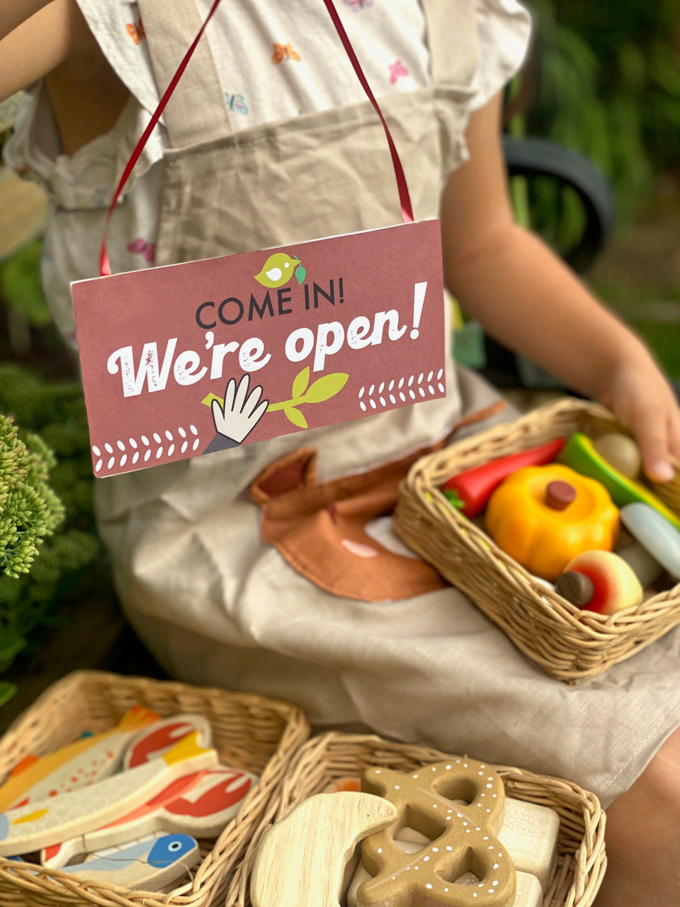 A hand crafted wicker super healthy veggie basket to be played with our market stall. All made from solid wood and completely plastic-free, this play food set is ideal for any sustainable-living tot looking to enjoy the wonder of playtime shopping.