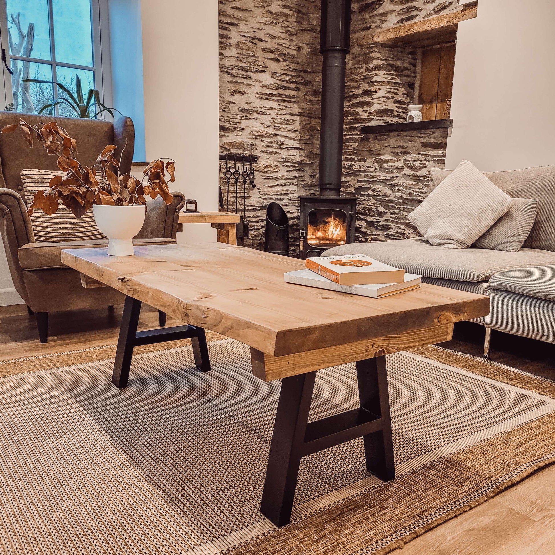 VELA Live / Waney Edge Coffee Table With Metal A Frame Legs