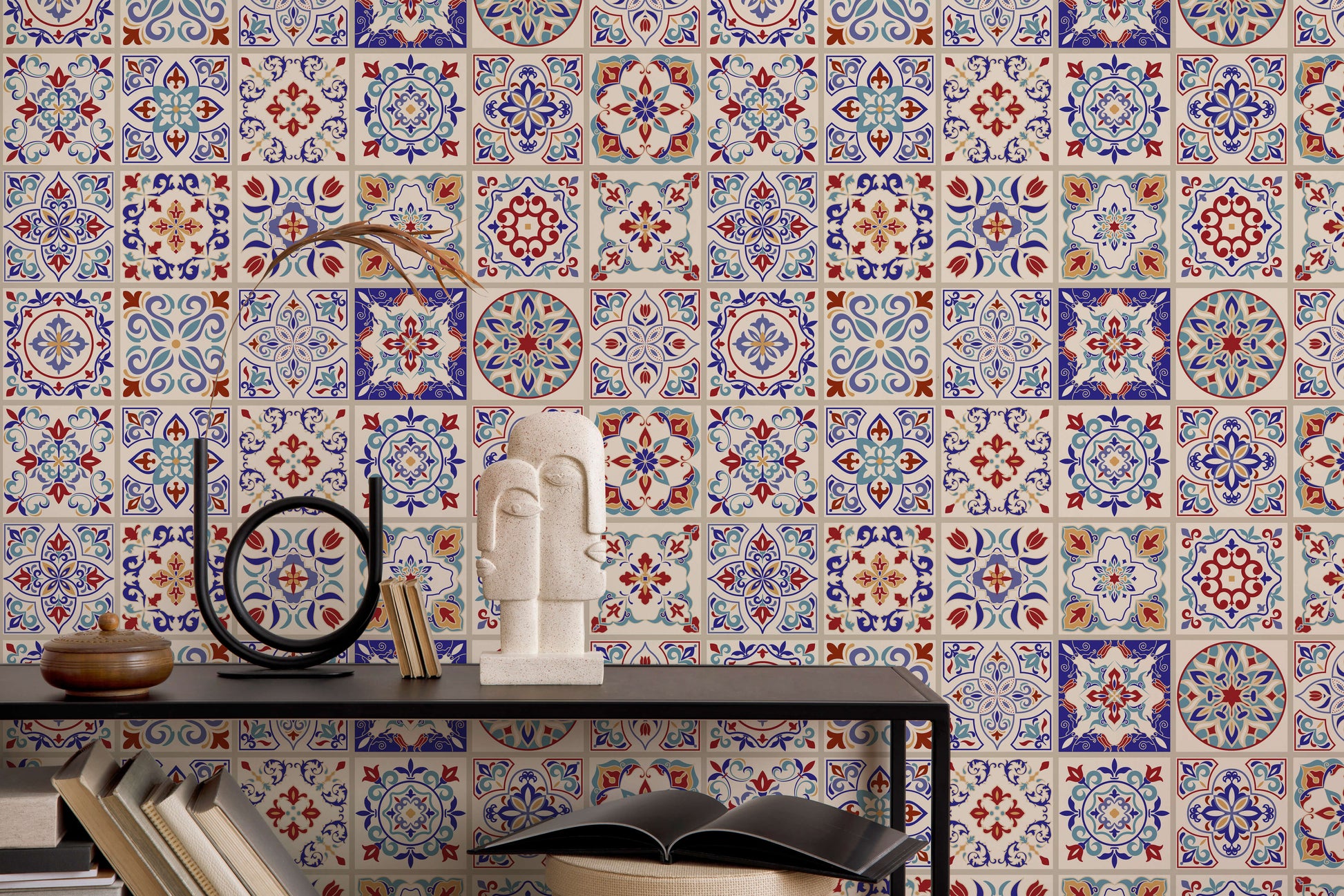 These faux Portuguese tiles have been designed with a subtle 3d effect to deliver maximum visual impact. Tile wallpaper can be a great way of introducing a tile look into a space, but are typically much easier and quicker to install, so DIY-friendly.
