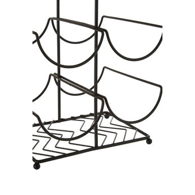 Its rectangular base features a chevron wire pattern that lends a touch of on-trend geometric style to kitchen worktops. Made from non-corrosive iron, its central section rises upwards in an arc formation that creates a handle for comfortable lifting and carrying. A total of six bottles of wine can be displayed in its u-shaped arms.