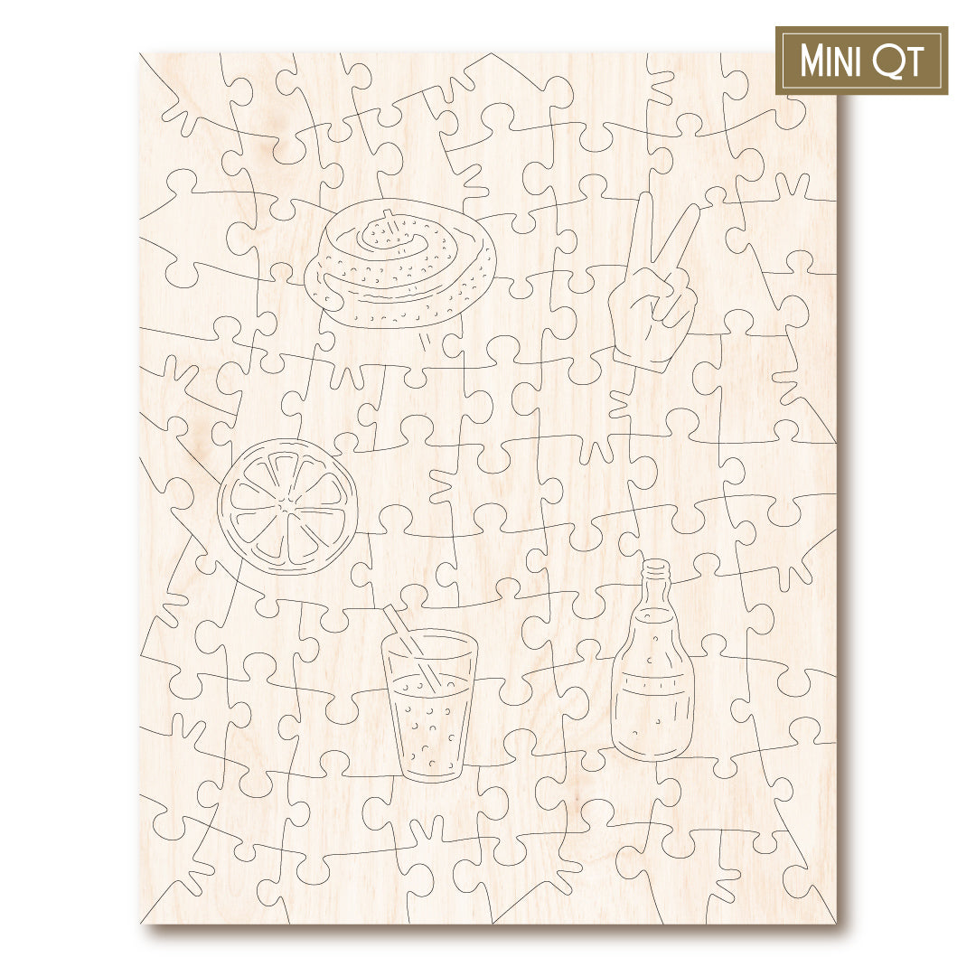 Our MINI QT puzzles are laser cut from thick, 4mm plywood and include 5 whimsies - they make a great puzzle snack!