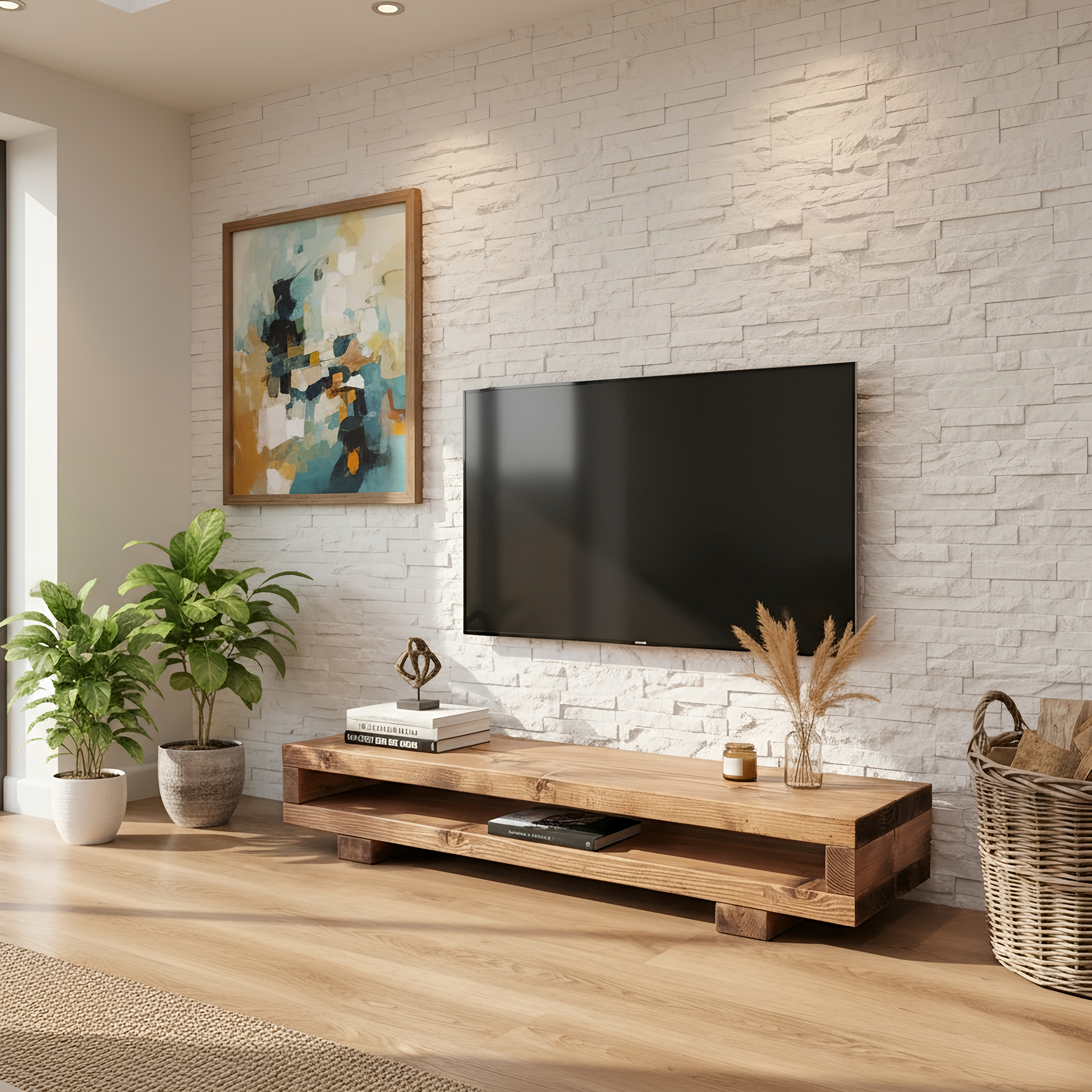VIOT Low Solid Wood Chunky TV Unit Dark Oak Colour