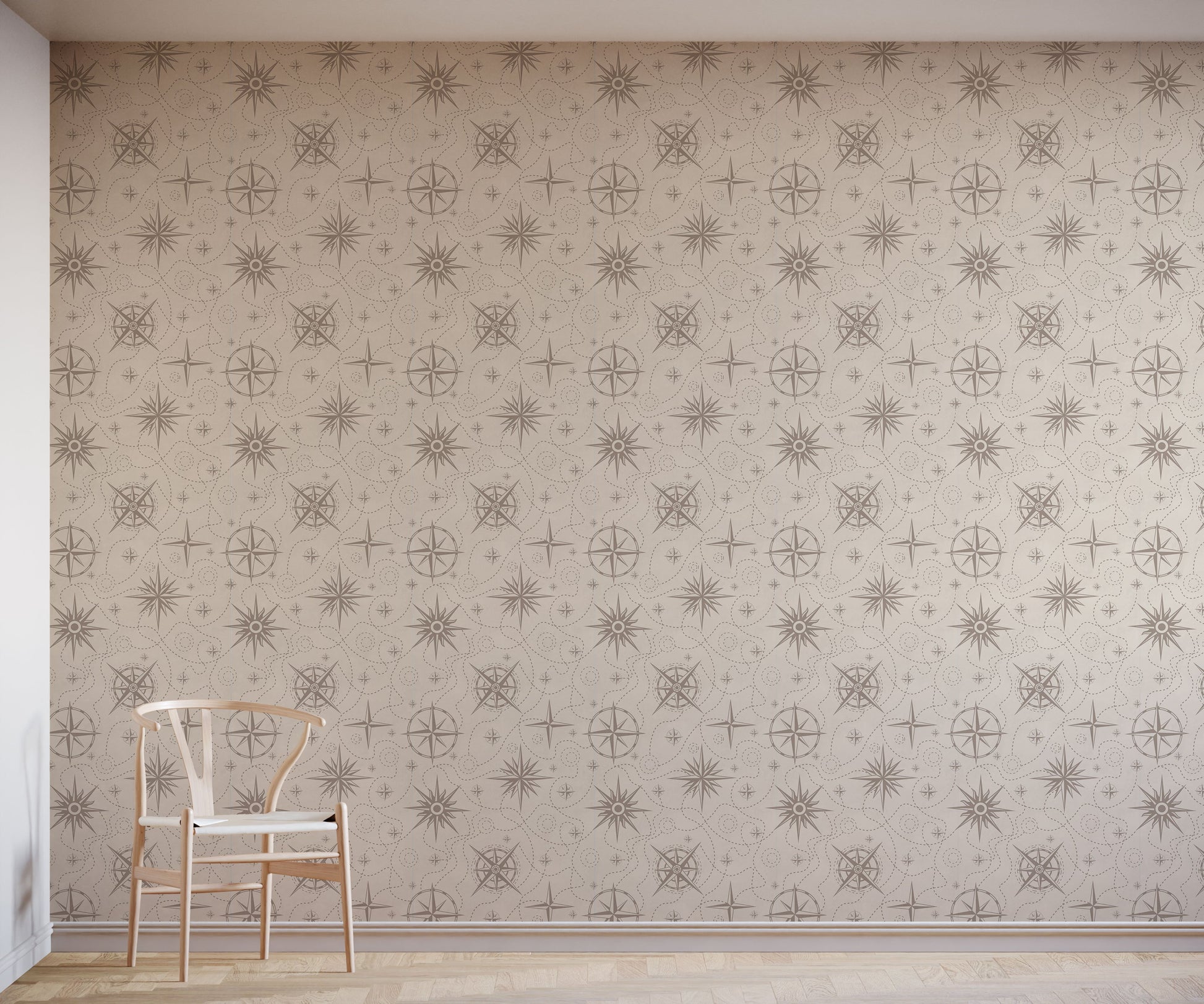 Featuring classic nautical motifs, this map wallpaper works perfectly in a vintage-style room. It works especially well as a nautical bathroom wallpaper because of its thematic connection to the water. The wallpaper features a subtle grain effect to help give it even more of a vintage feel, while remaining subtle enough to be tasteful.