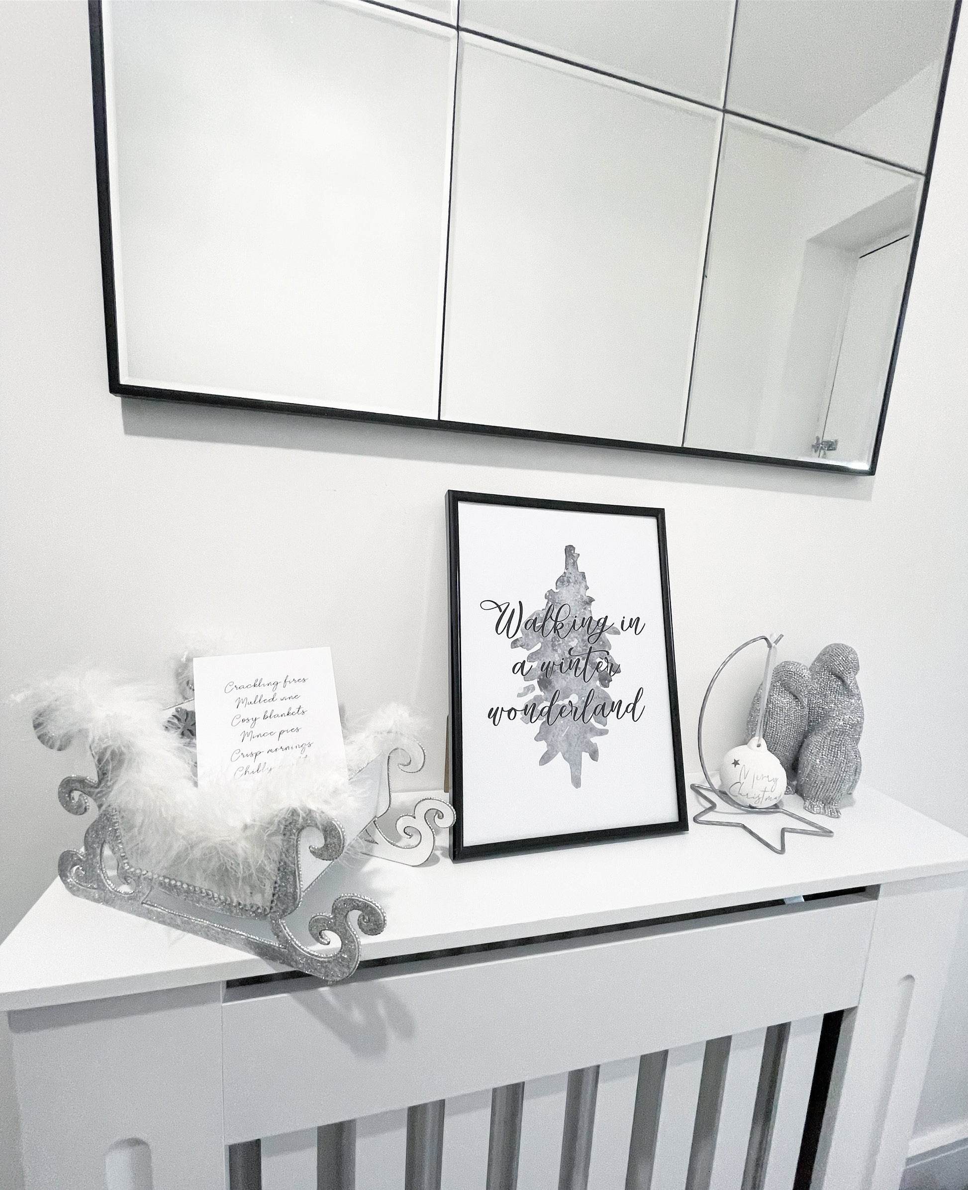 Walking In A Winter Wonderland Grey Tree Winter Christmas Seasonal Wall Home Decor Print