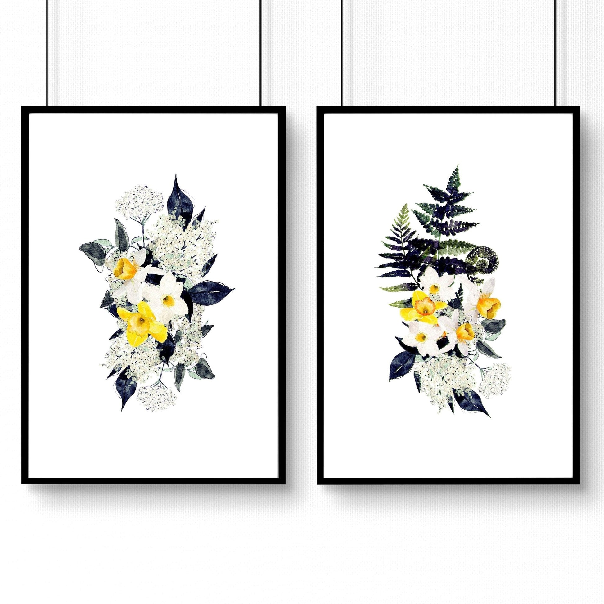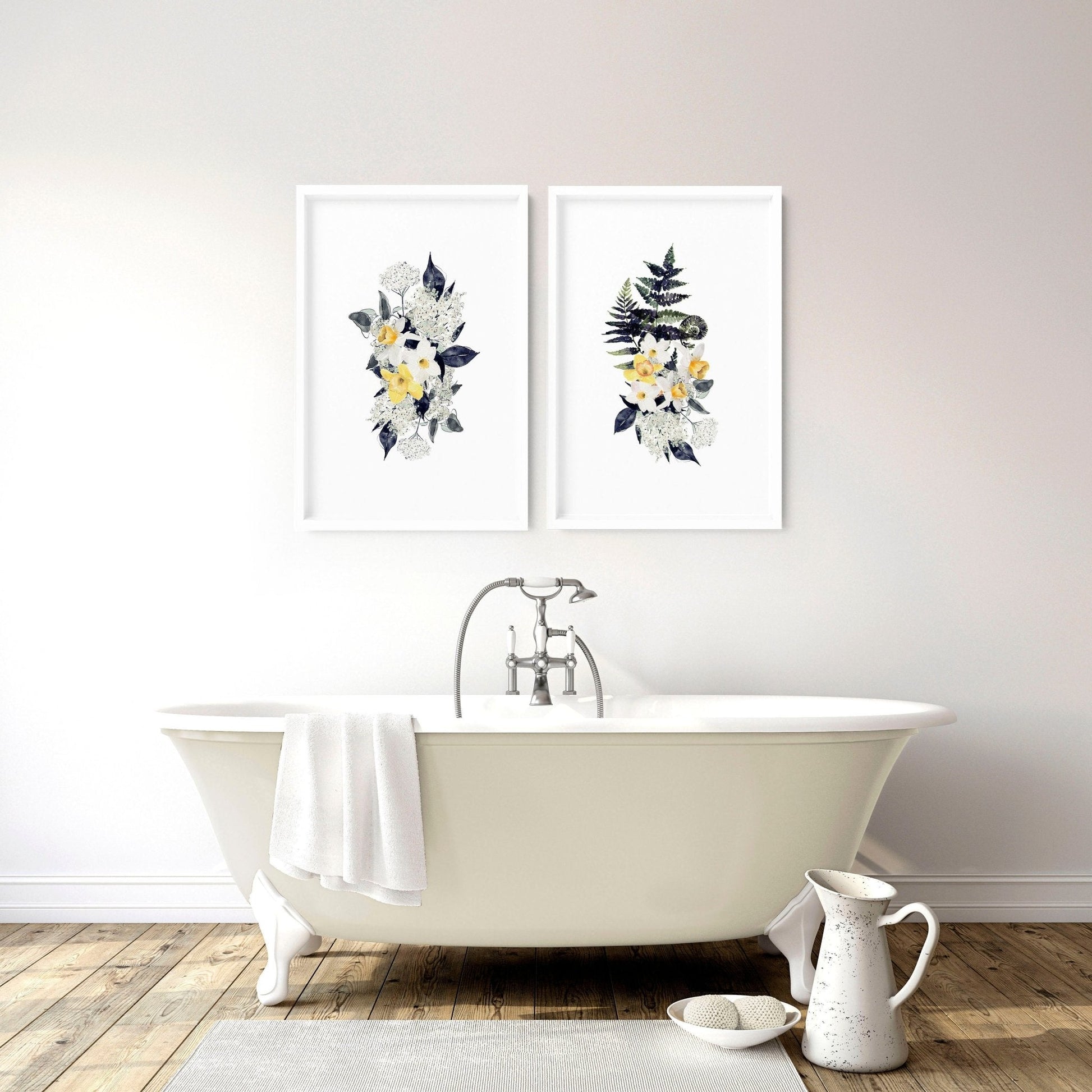 Wall art for bathroom walls | set of 2 Floral wall art prints
