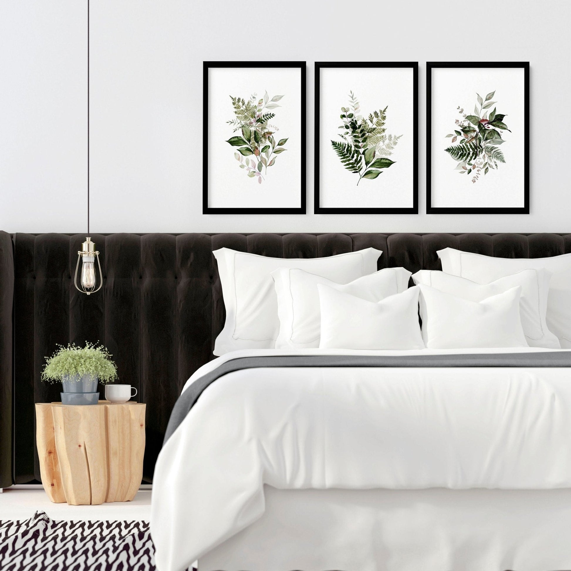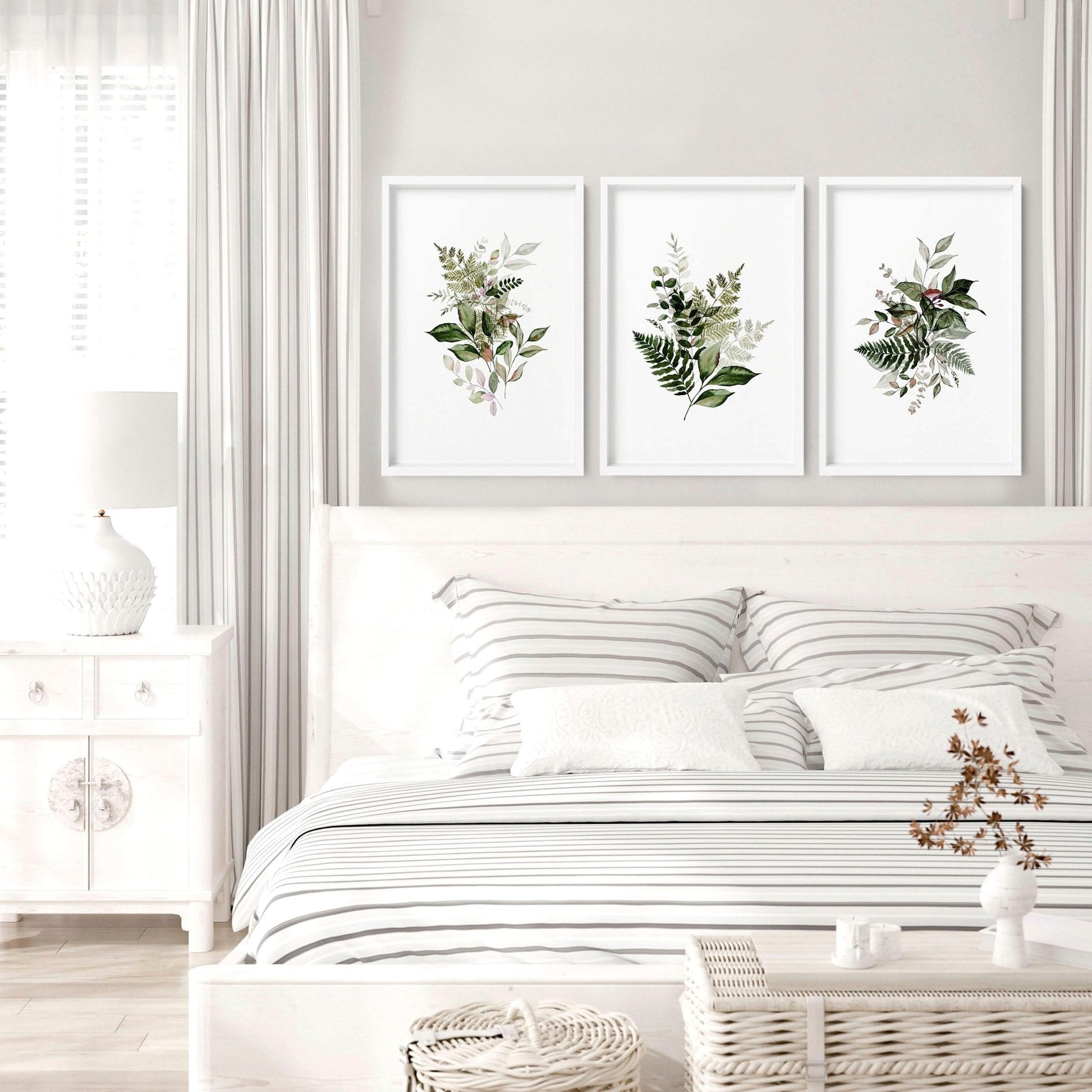 Finally, enhance the rustic allure of your farmhouse bedroom with our Farmhouse Wall Decor Bedroom Set. Let the Watercolour Botanical prints in olive green with splashes of burgundy add a touch of natural beauty and rustic charm to your space.