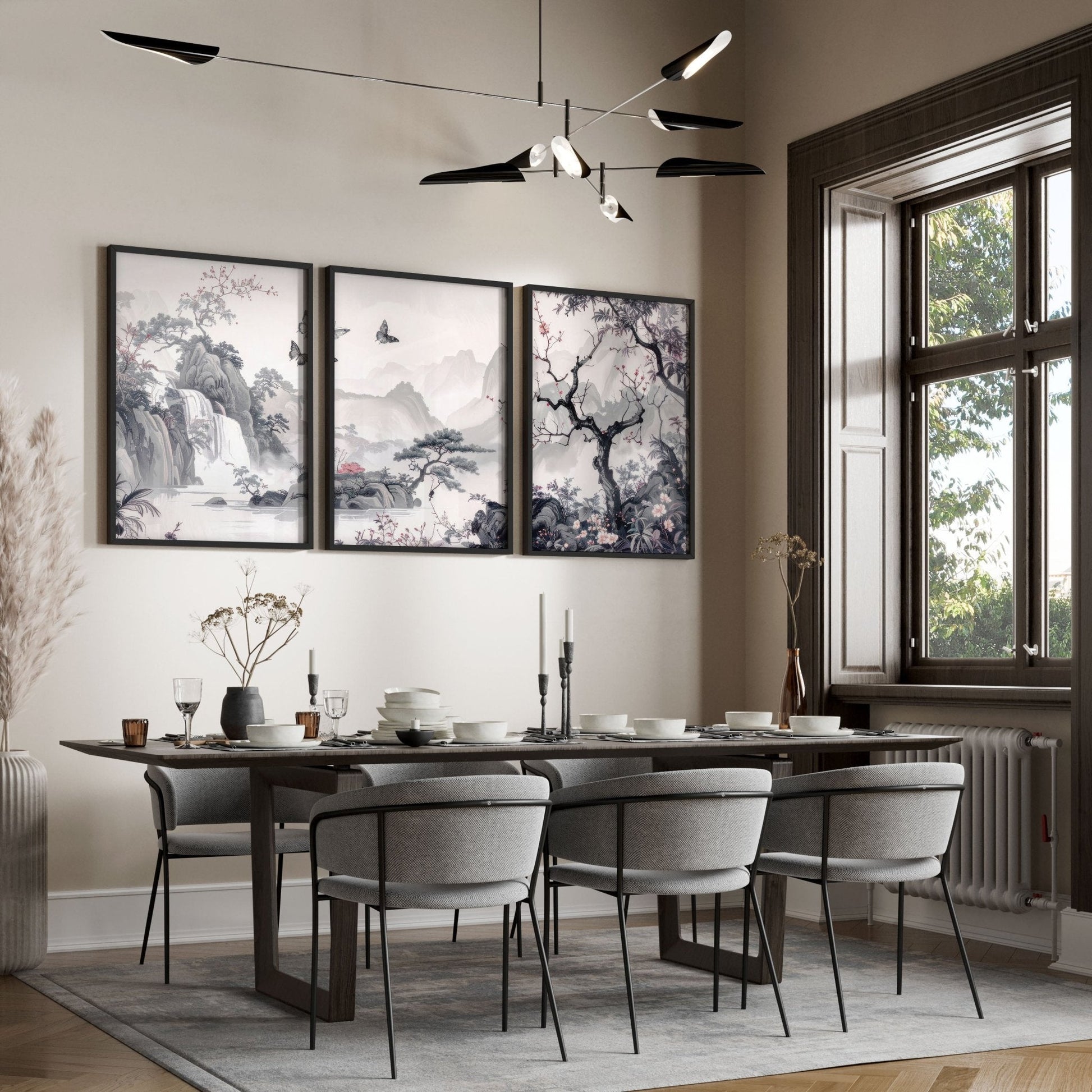 Wall Art For Living Room Large | Set of 3 Chinoiserie Wall art Prints