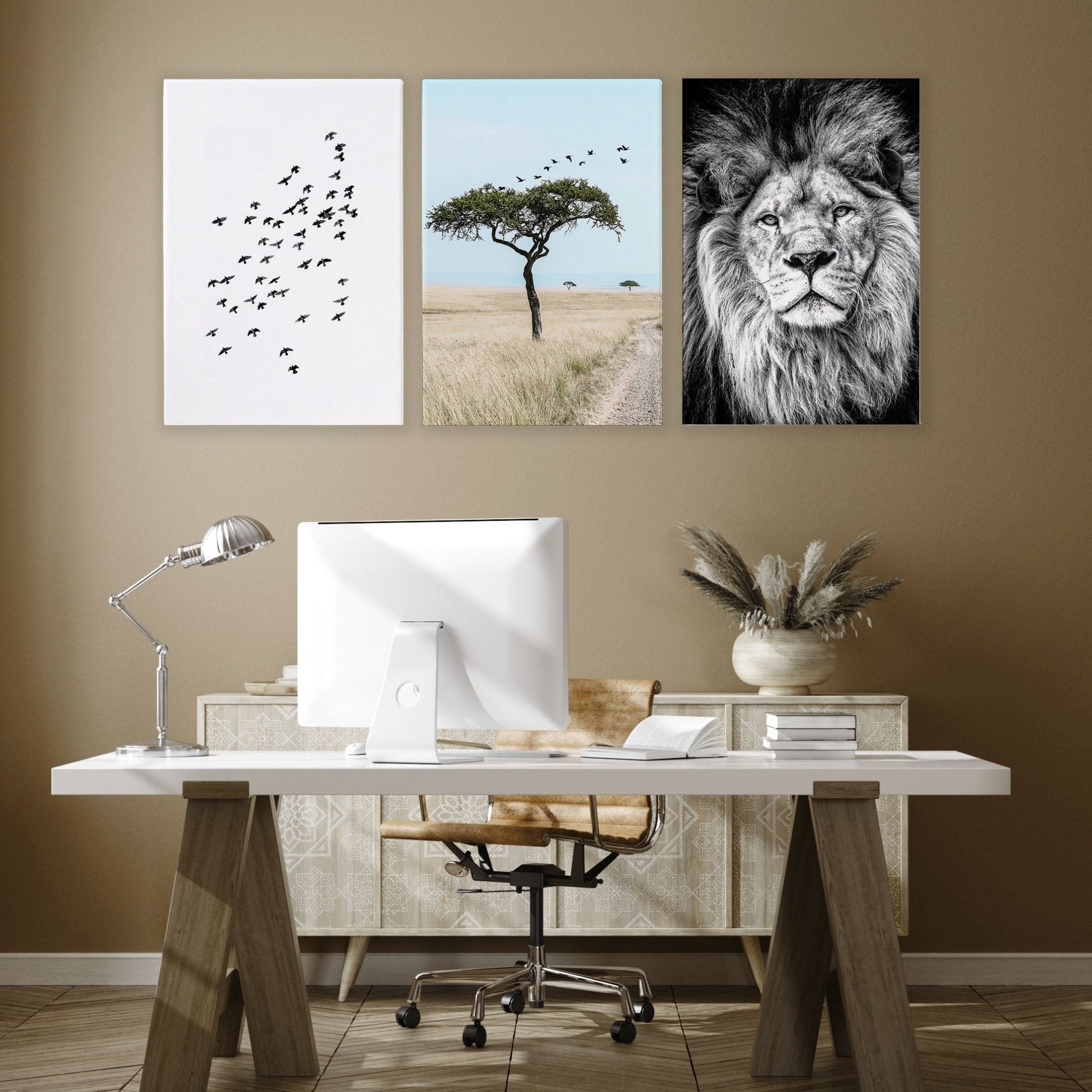 - You will receive a Set of 3 African Wildlife Wall Art Prints for your office wall art.