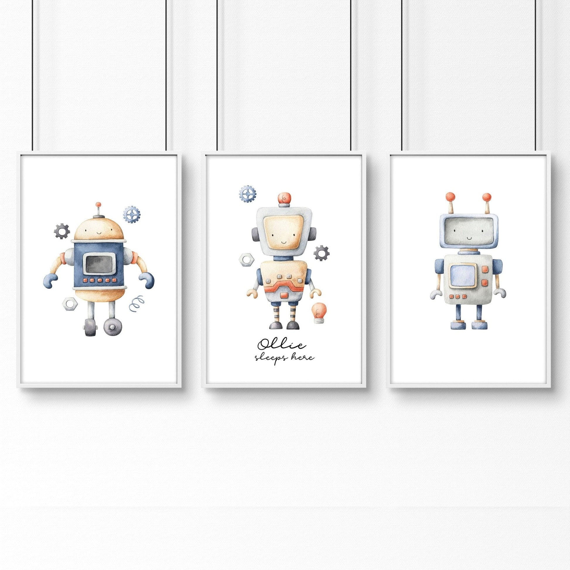 Wall art nursery - set of 3 vintage Robots art prints details: