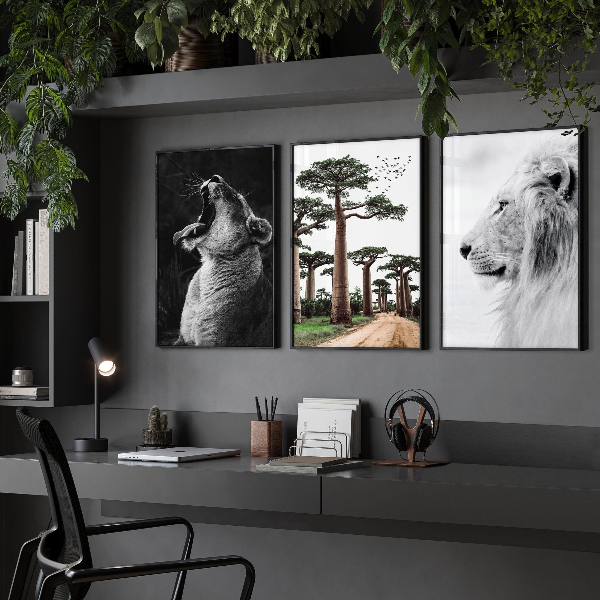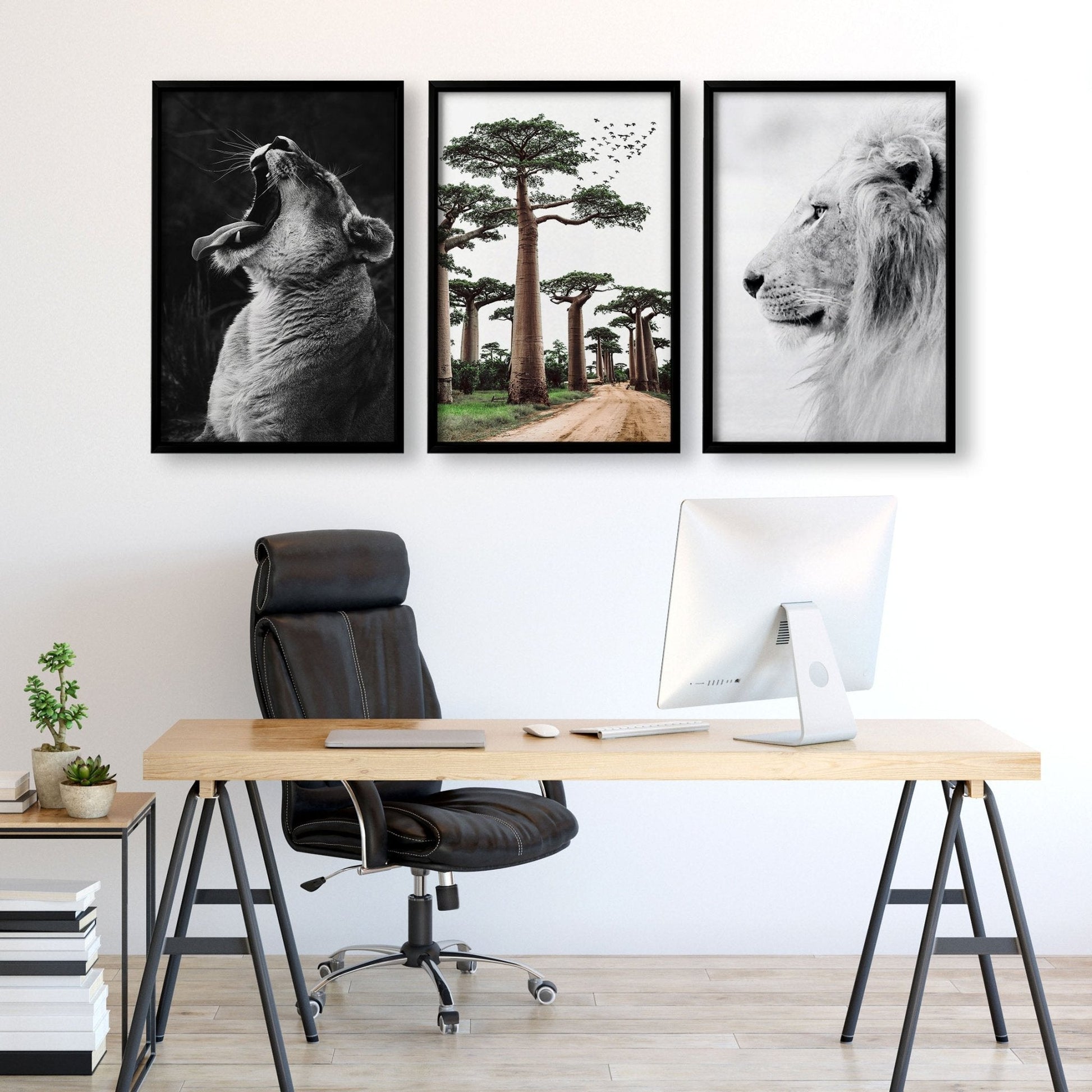 Elevate your office space with our Wall Art Pictures Framed, a stunning Set of 3 African Wildlife Wall Art Prints that brings the untamed beauty of the wild directly indoors. Imagine the roaring life of the Serengeti captured in a vibrant multicolour palette, turning every glance into an inspiring escape. These prints do not just adorn your walls; they transform them, crafting an energetic environment that fires your creativity and focus.
