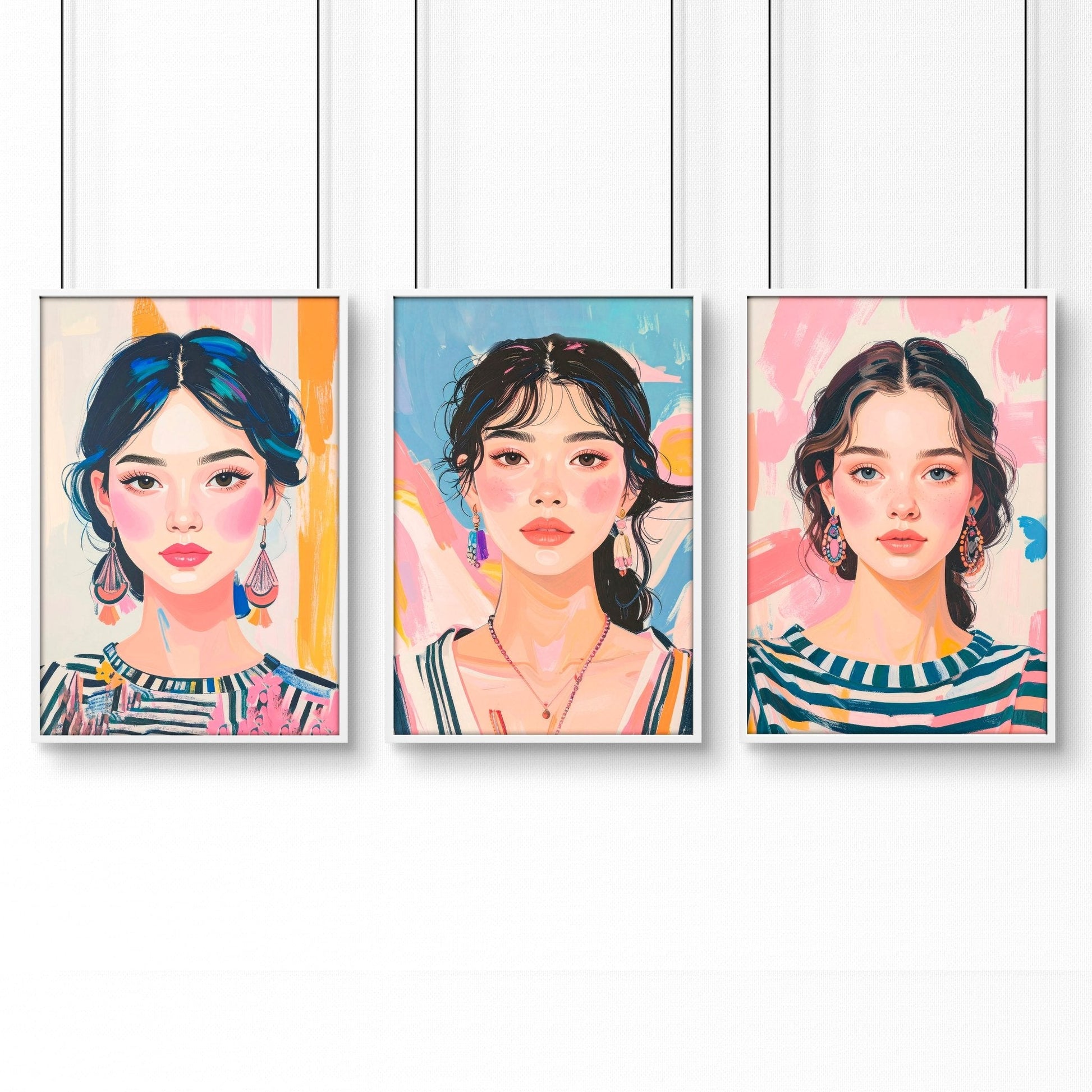 Wall Paintings For Bedroom | Set of 3 Boho Women Wall Art Prints Details: