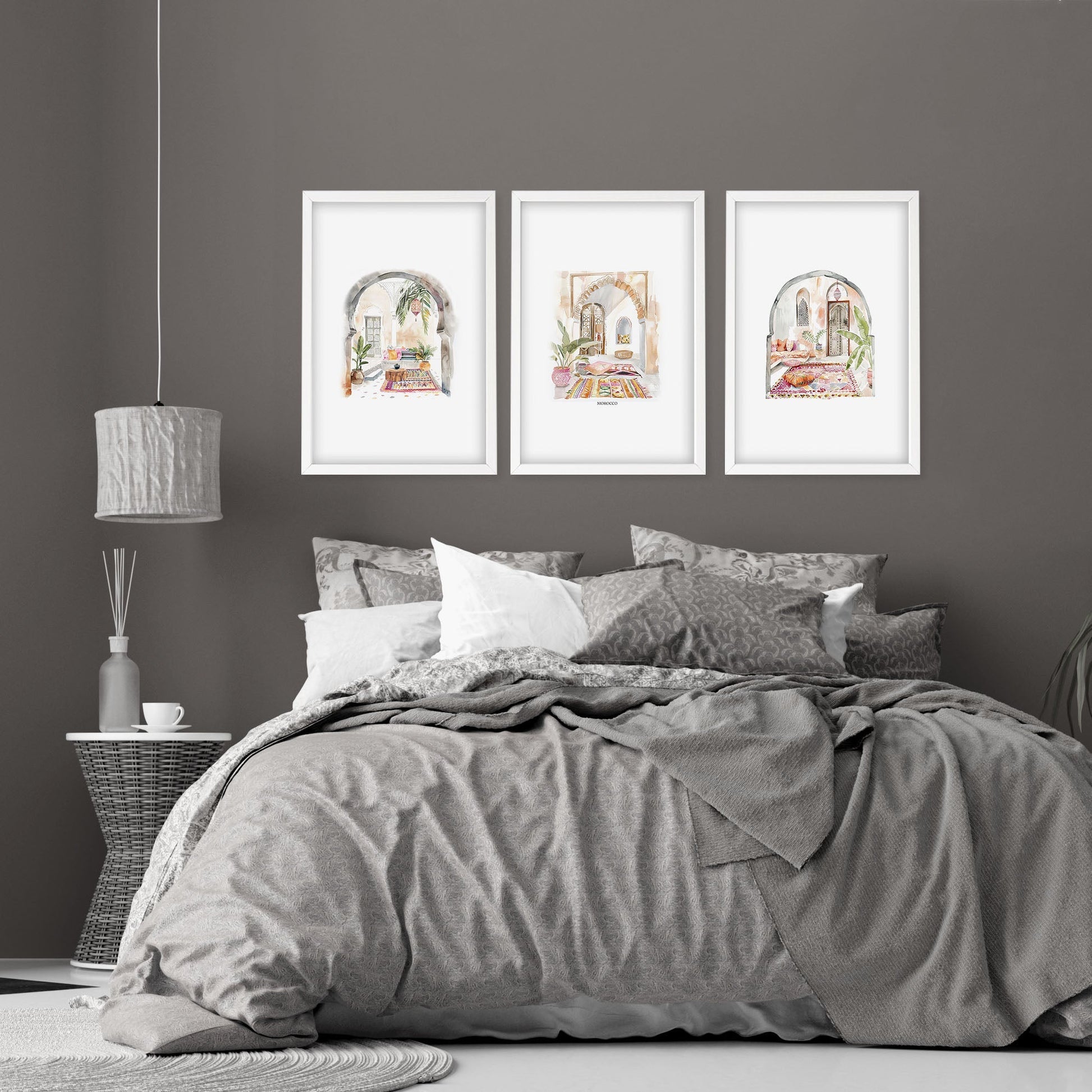 - You will receive a Set of 3 Moroccan Inspired Wall Art Prints for your Bedroom Wall Art.