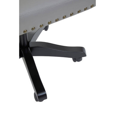 This chair features a grey leather effect padded seat with diamond pattern tufted back and studded detail trim at the front. Height adjustable with swivel action, the five-claw wooden base of this chair with castors ensures swift mobility and stability.